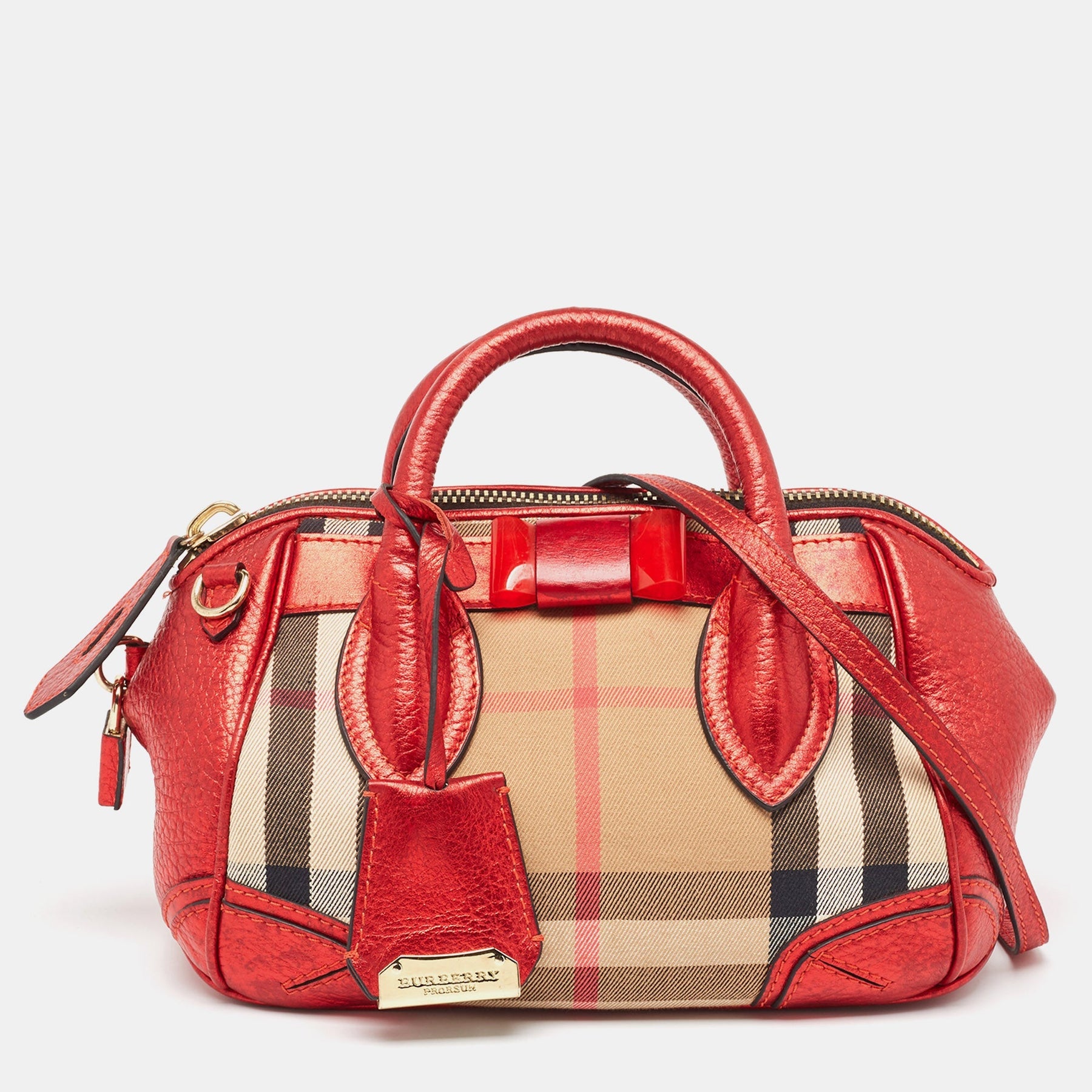 BURBERRY Red House Check Canvas and Leather Blaze Satchel