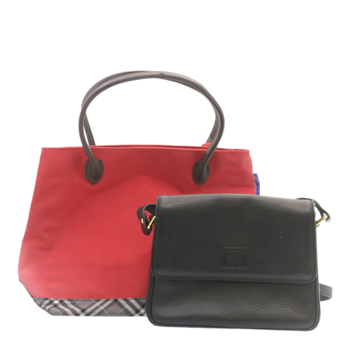 BURBERRY Shoulder Bag Nylon Leather 2Set Red Black Auth am1868g