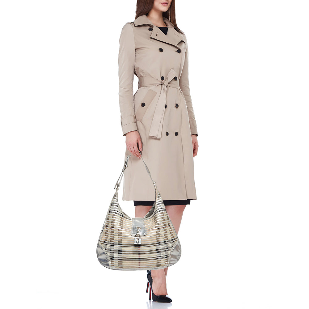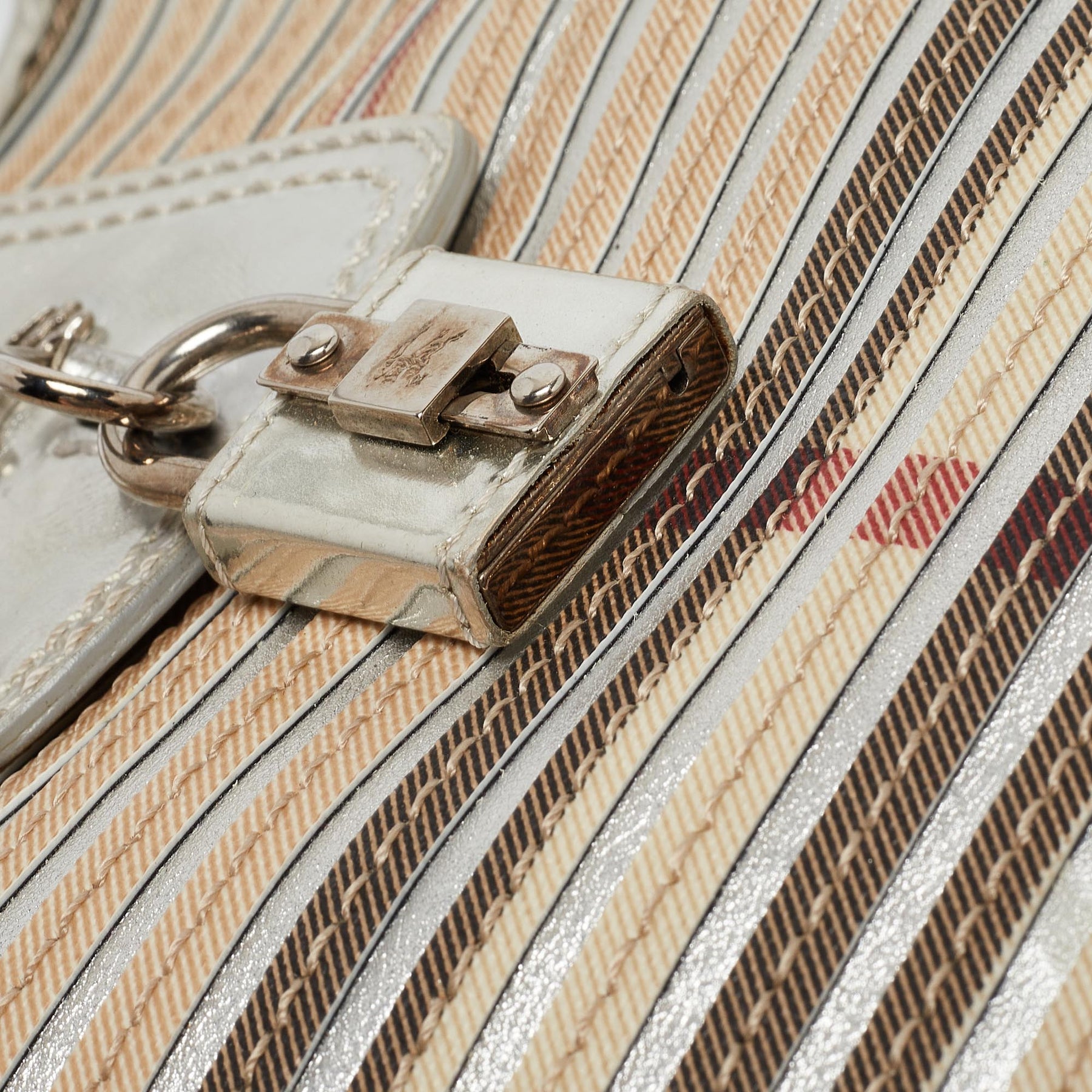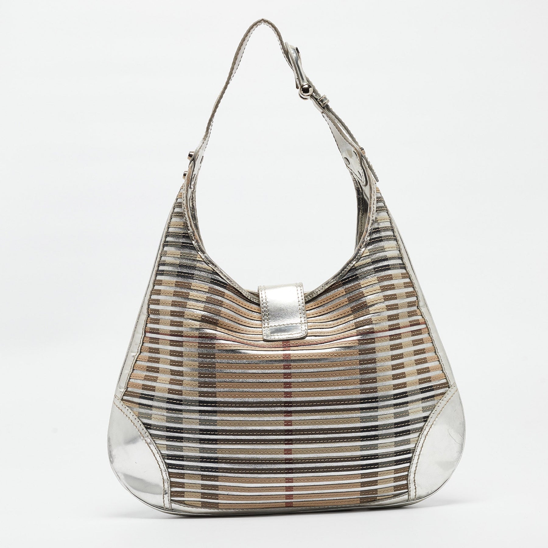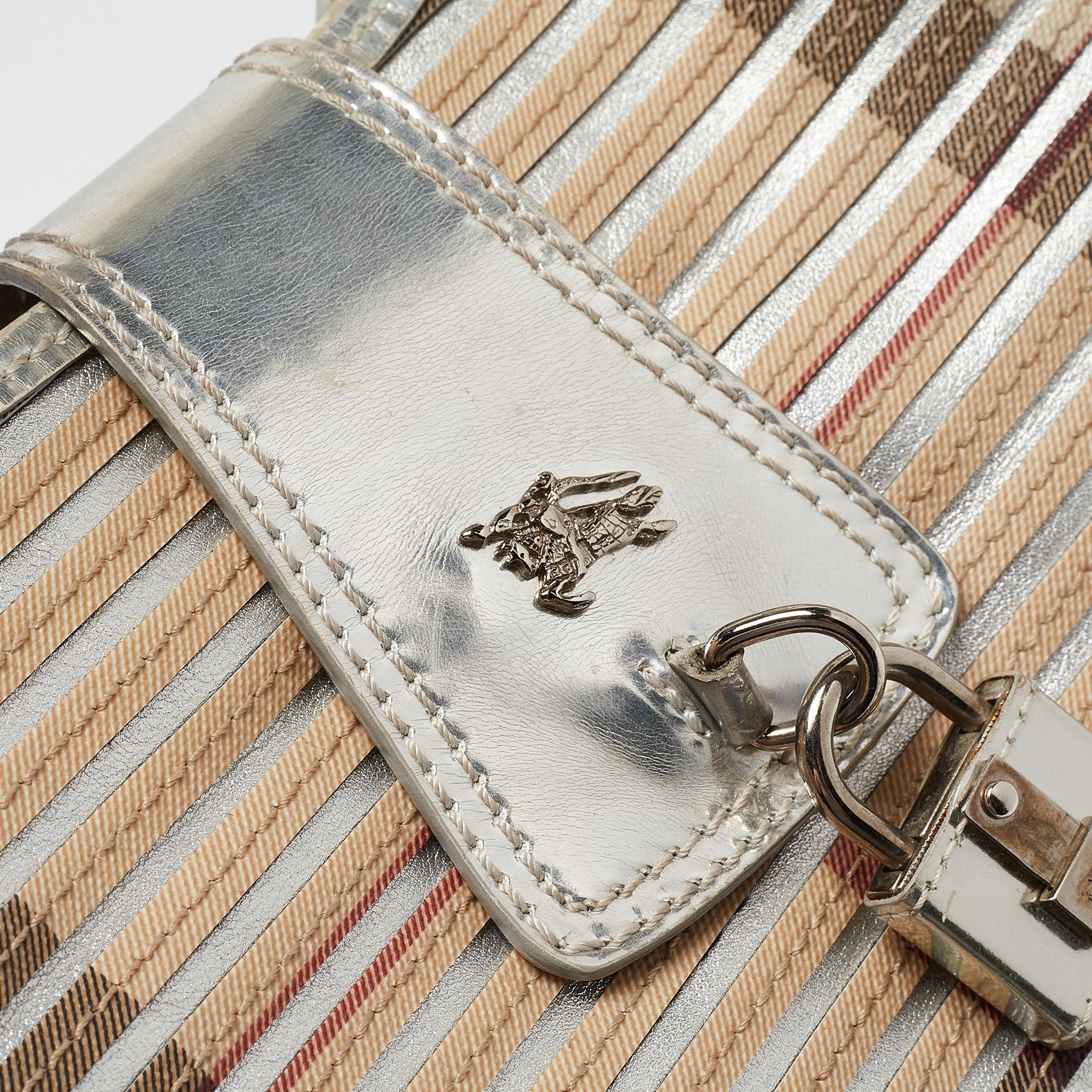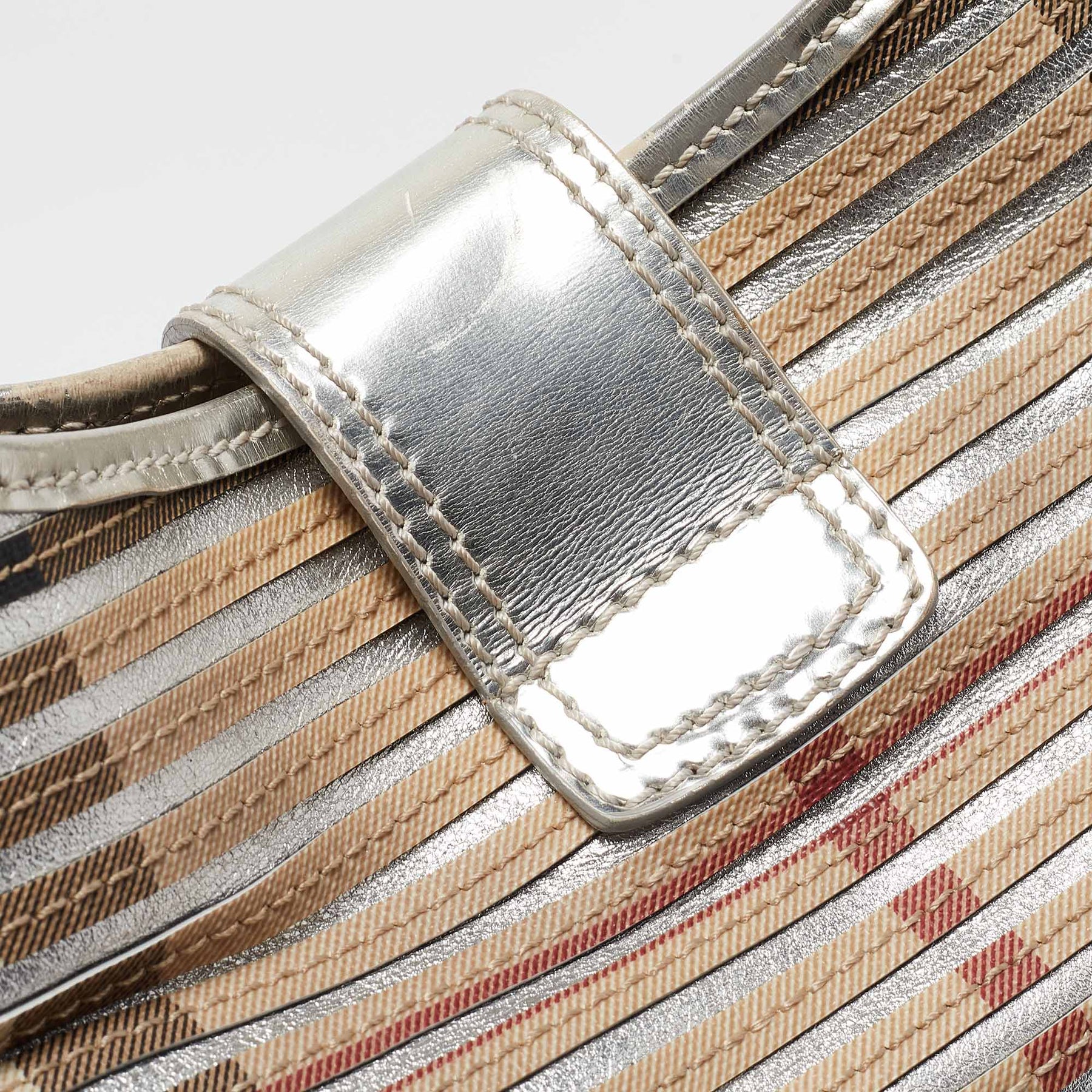 BURBERRY Silver/Beige House Check Coated Canvas and Patent Leather Brooke Hobo