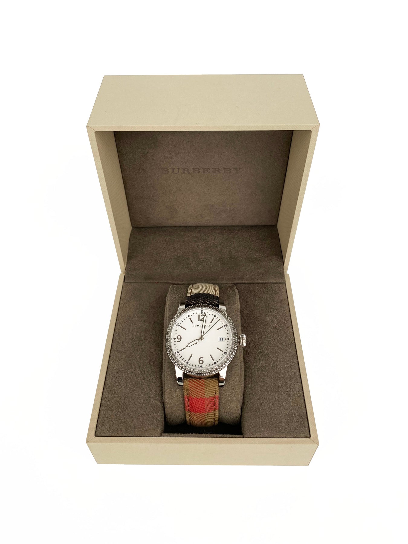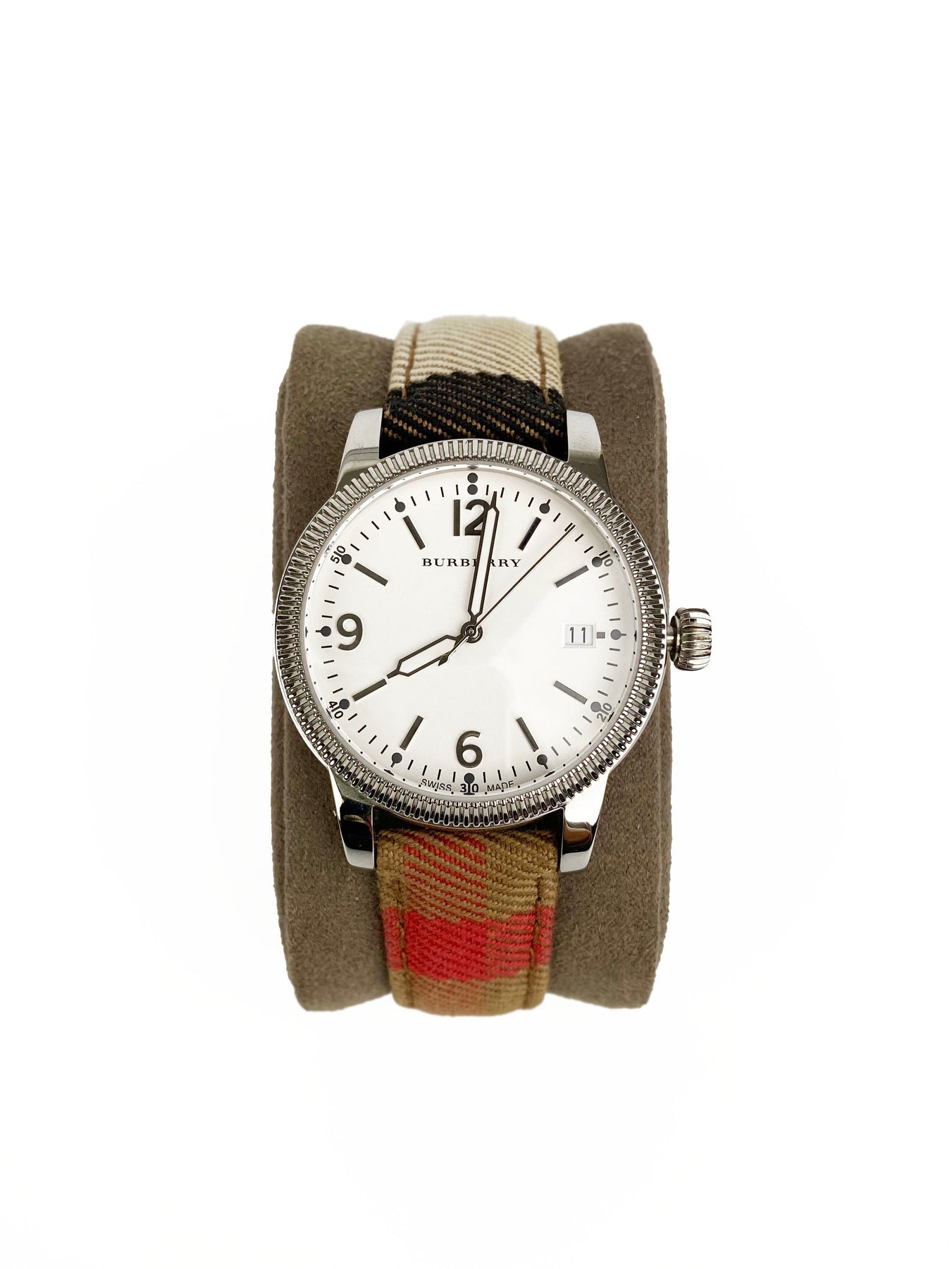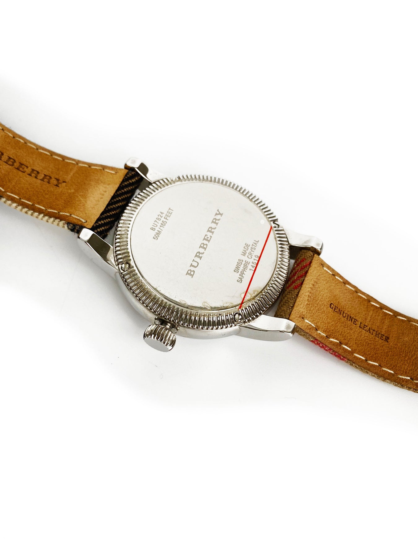 Description : Bold and versatile Burberry watch from the Utilitarian collection. In great condition; some discolouration on inner straps.