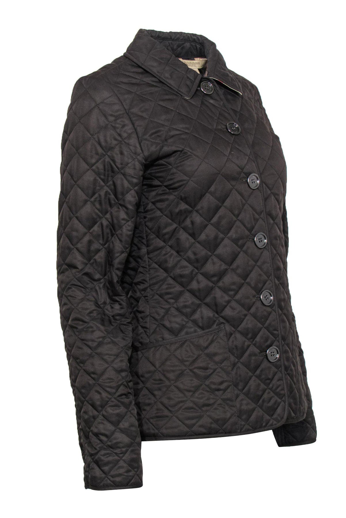 Go classic and quilted with this Burberry Brit jacket! Made with a posh quilted design and adorned with the famous British fashion house's iconic tartan print lining, this rich olive layer is perfect for bringing some timeless vibes to your chilly weather wardrobe. Throw on over a chunky turtleneck and sleek jeans and you'll be all set for holiday shopping or a day trip to the city.
