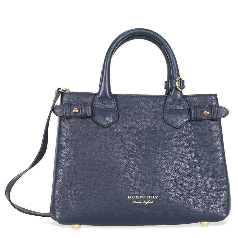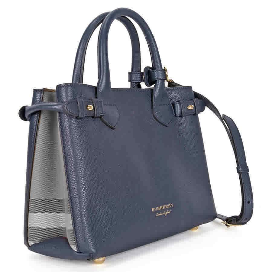 Burberry Small Banner House Check Leather Tote - Ink Blue 4023703