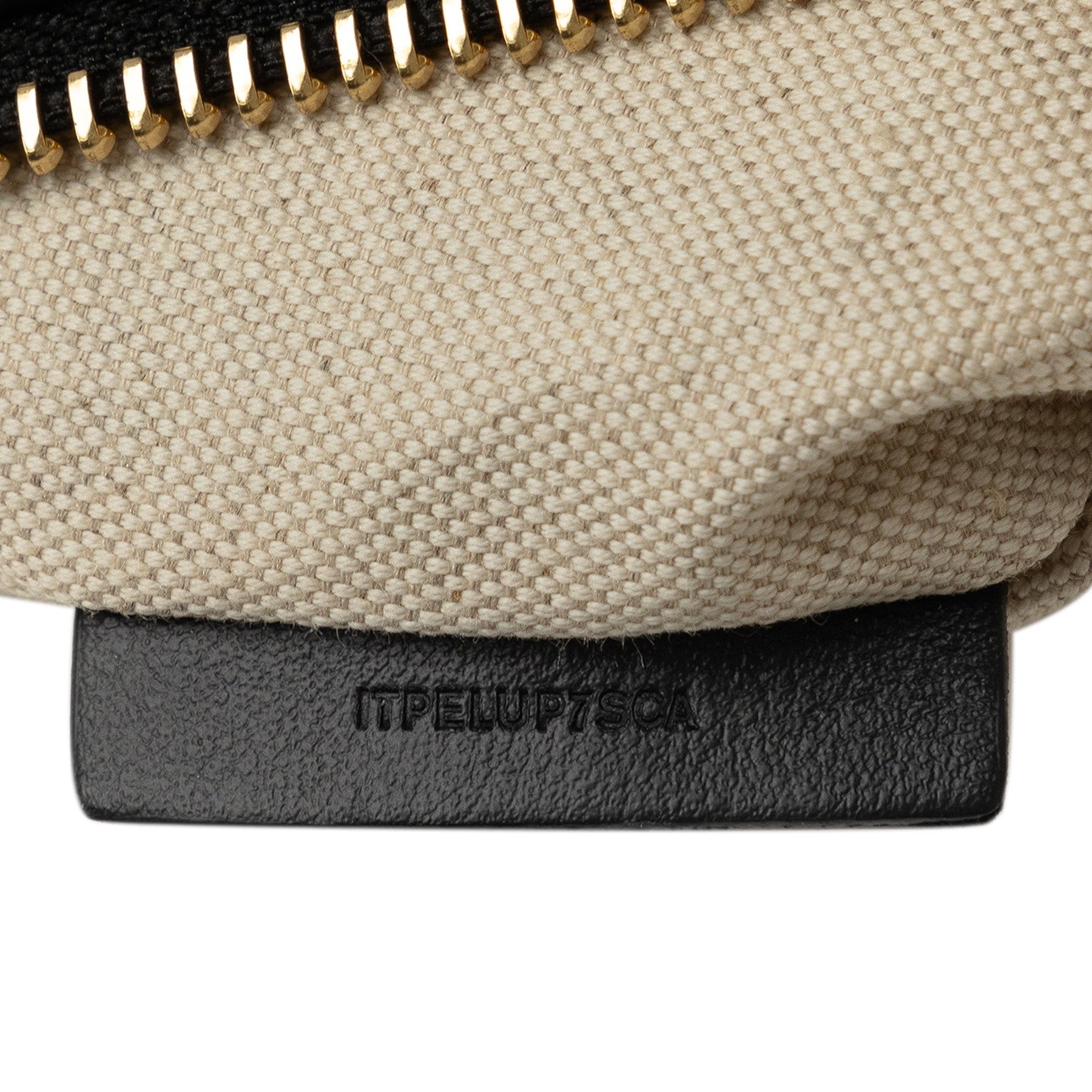 This tote bag features a canvas body with leather trim, flat leather straps, an open top with a top strap closure, and a zip pouch.