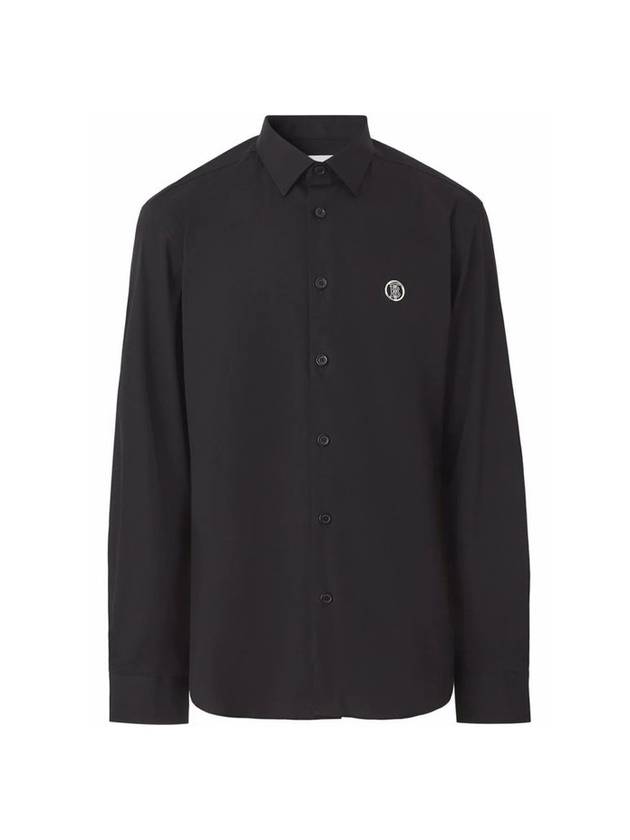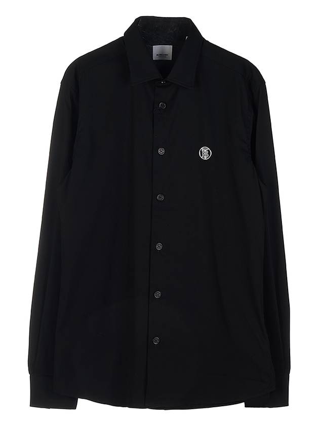 Burberry Monogram Motif Stretch Cotton Blend Long Sleeve Shirt Black