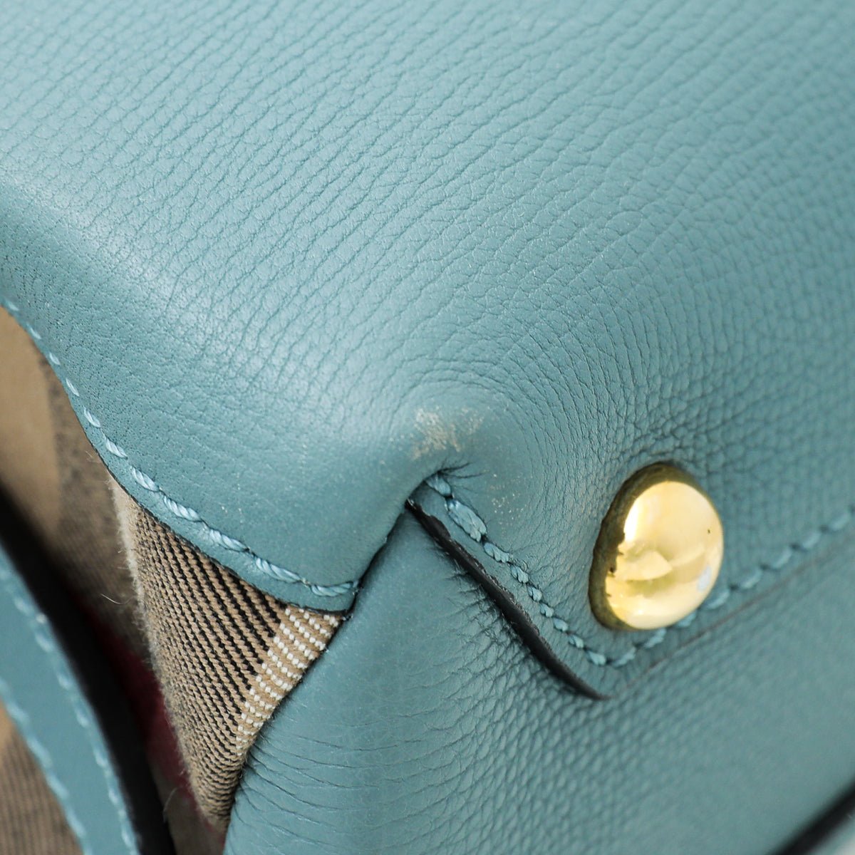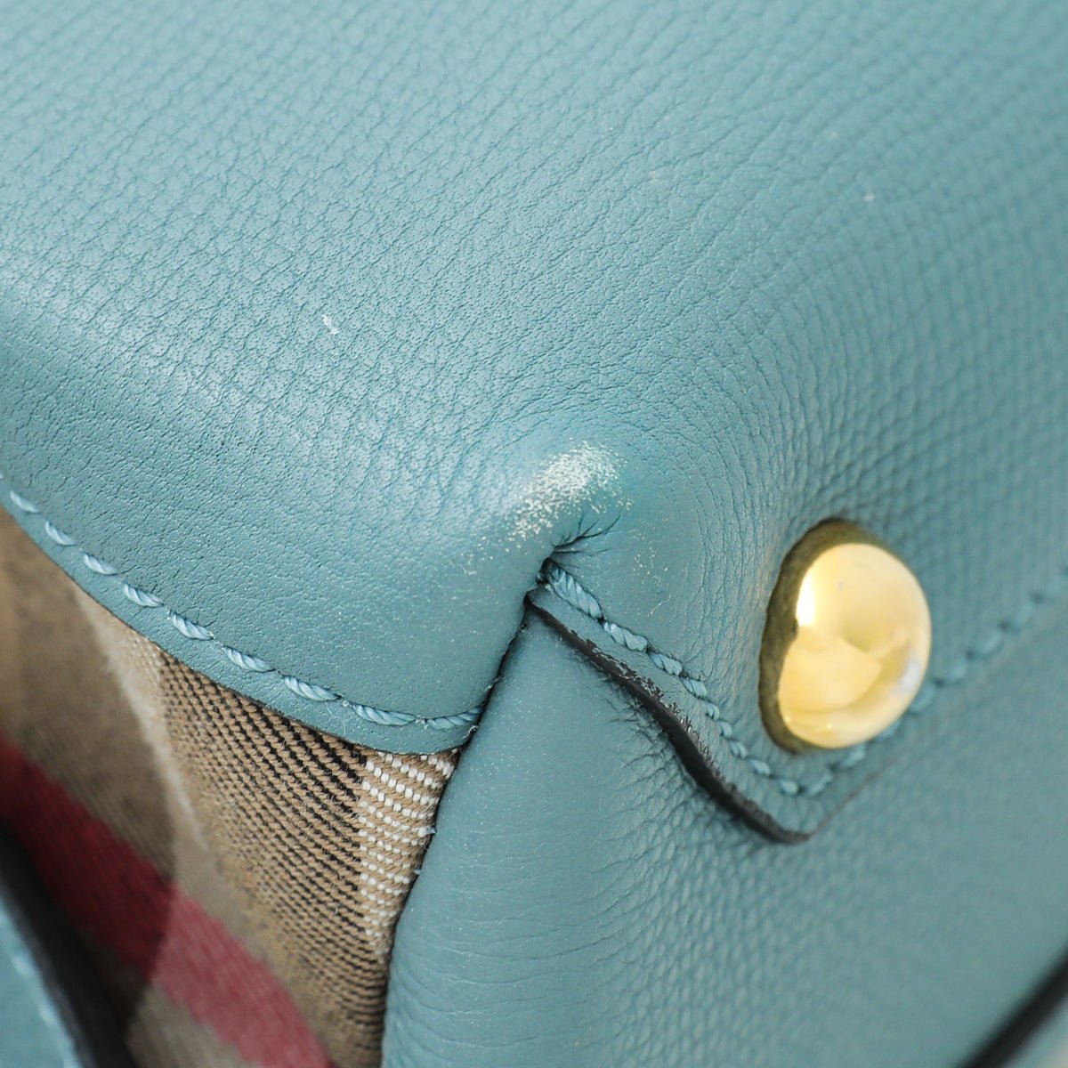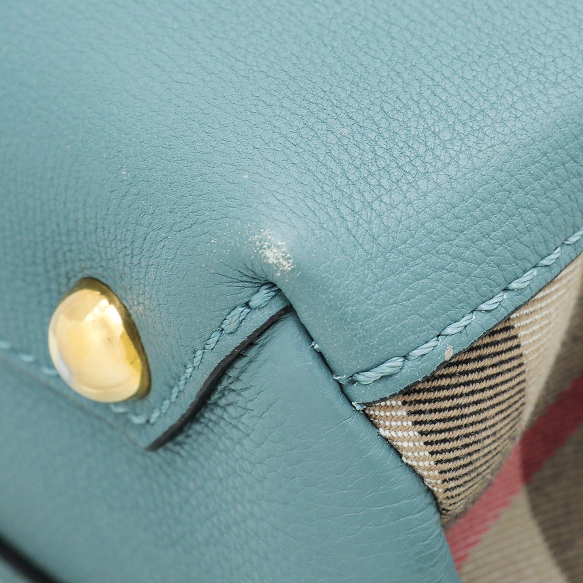 • Material: Teal Grey Leather and House Check Canvas Trim