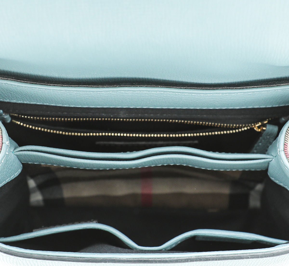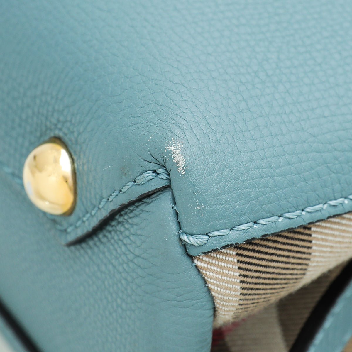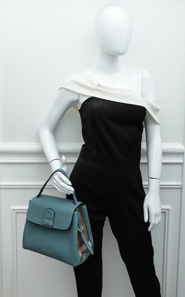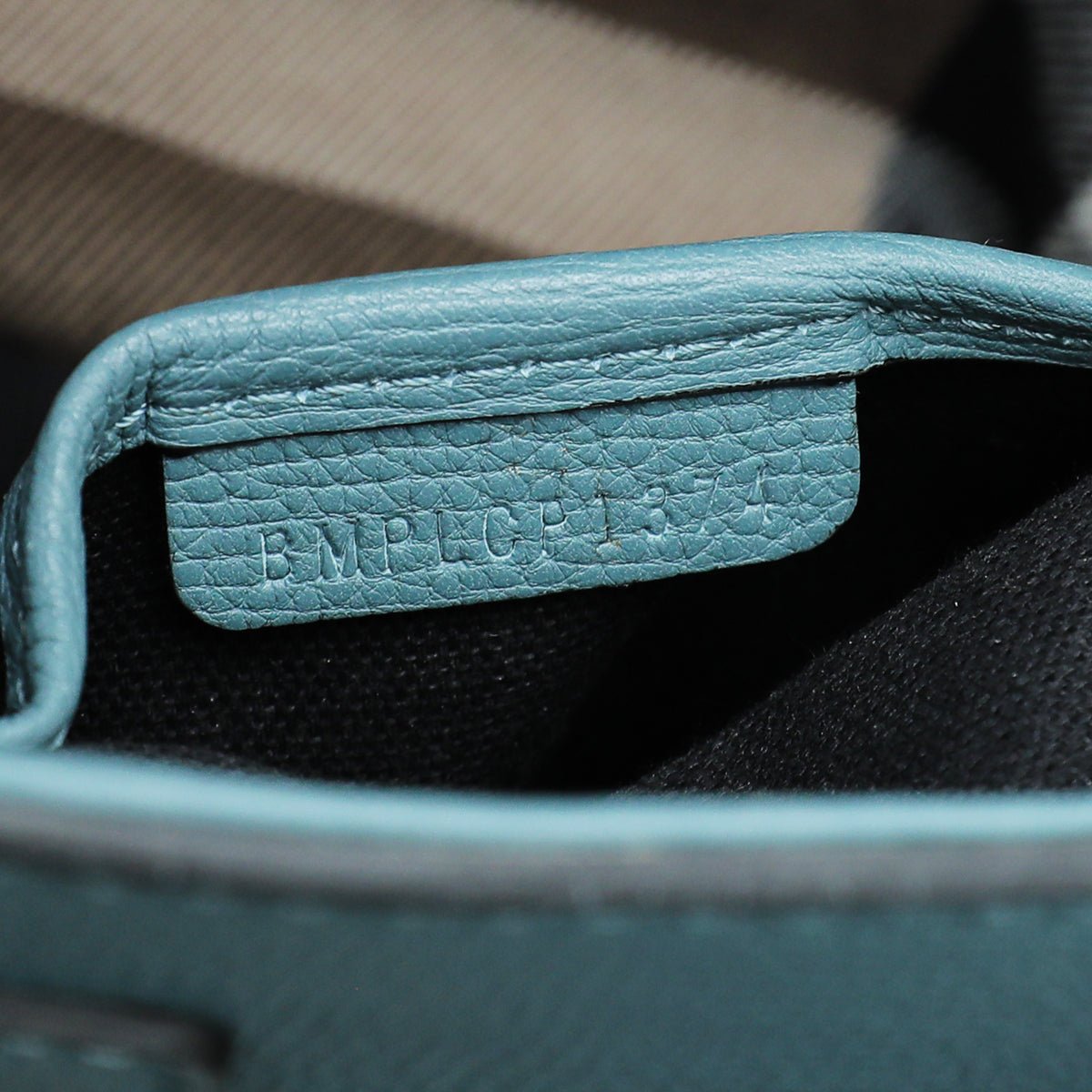• Material: Teal Grey Leather and House Check Canvas Trim