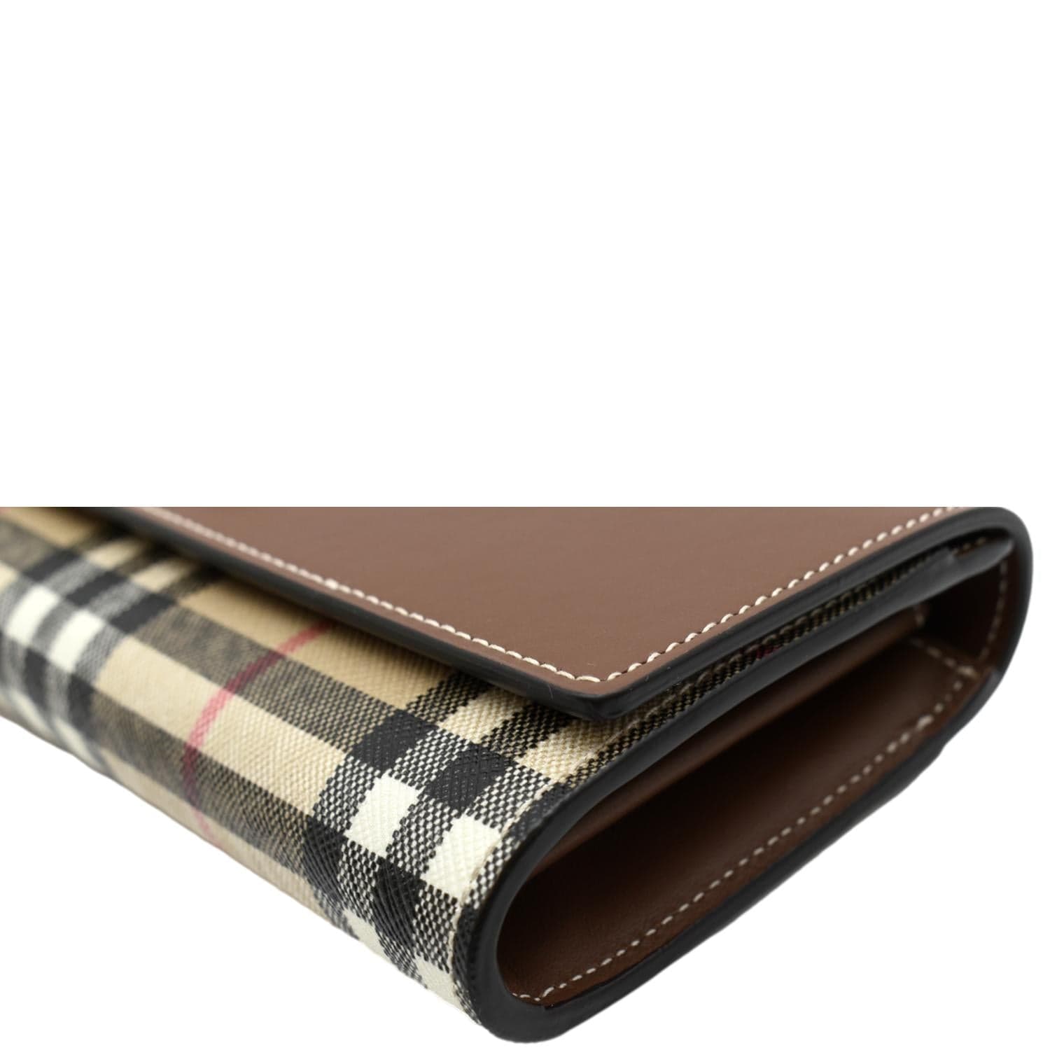 BURBERRY Continental Vintage Leather Check Wallet Brown