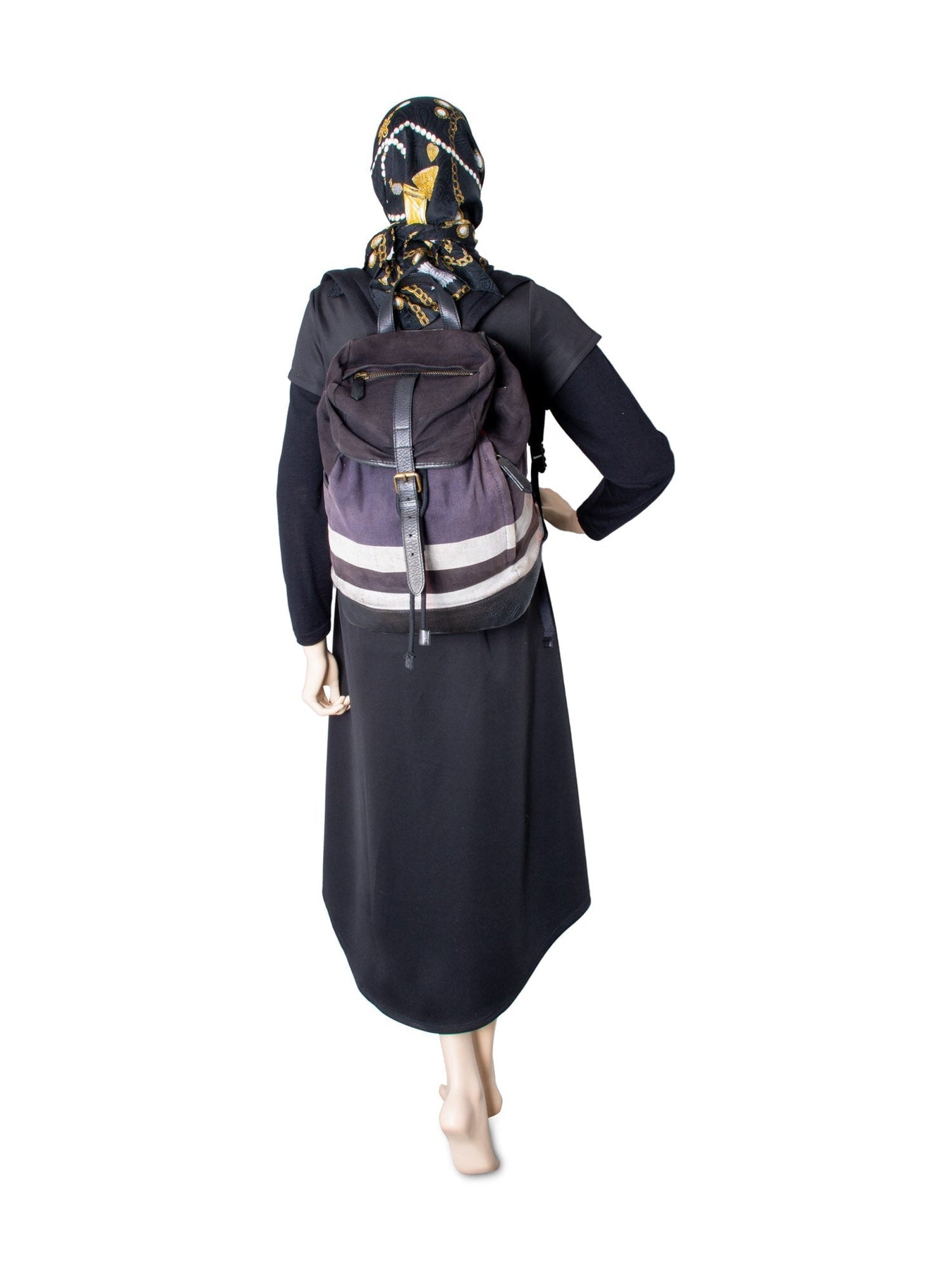 Burberry Utility Backpack or . It is in thick leather and nova check durable canvas combination and antique brass hardware. It features a crossover top flap with buckle closure, numerous exterior pockets, a drawstring pull and adjustable straps.