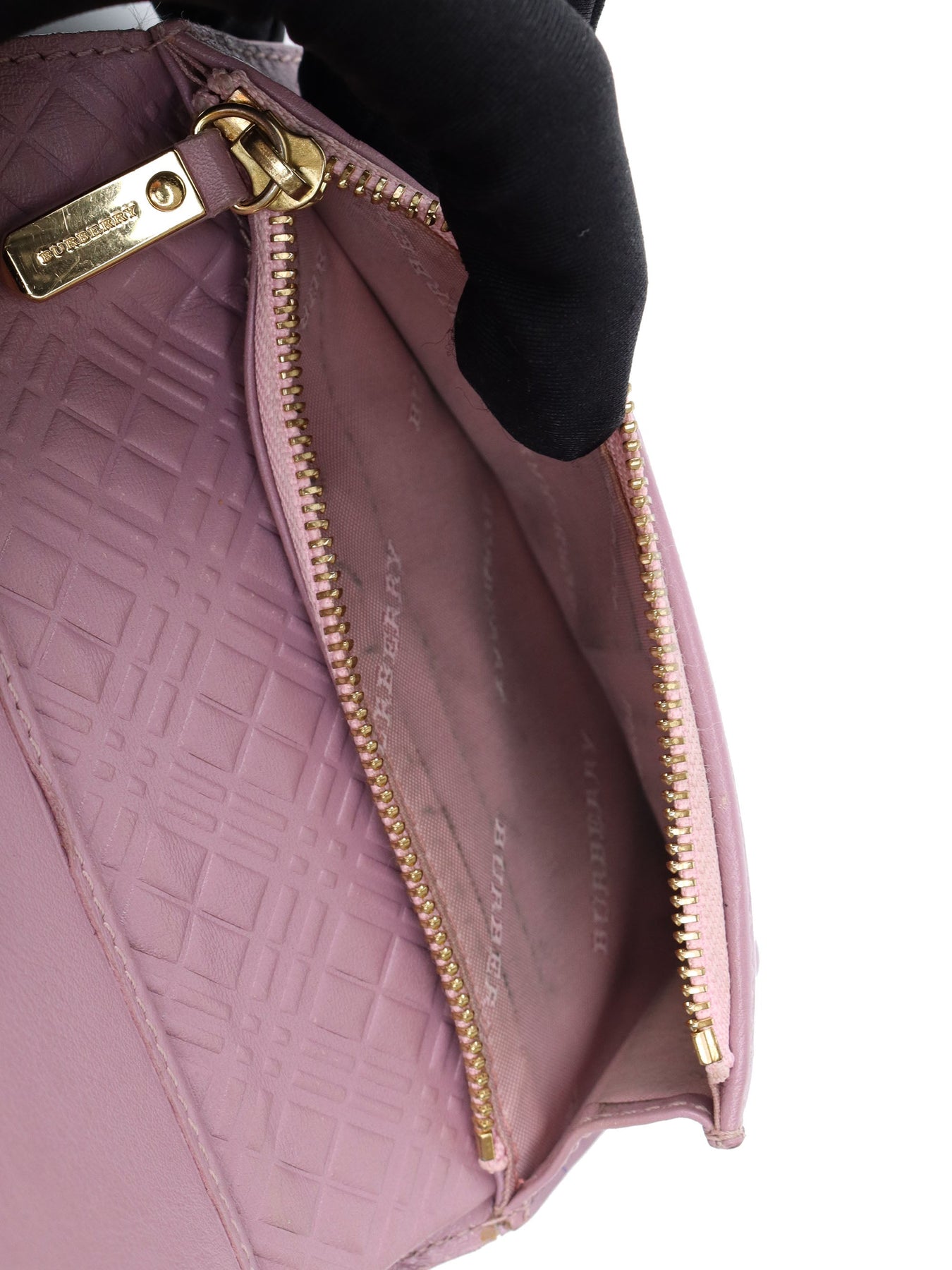 Description : Stunning Burberry wallet in a violet purple. Features ten card slots, two open compartments and one zipped compartment. In great condition; mild signs of wear on outer and stitching, one scratch on front, mild cracking on spine, signs of wear inner.