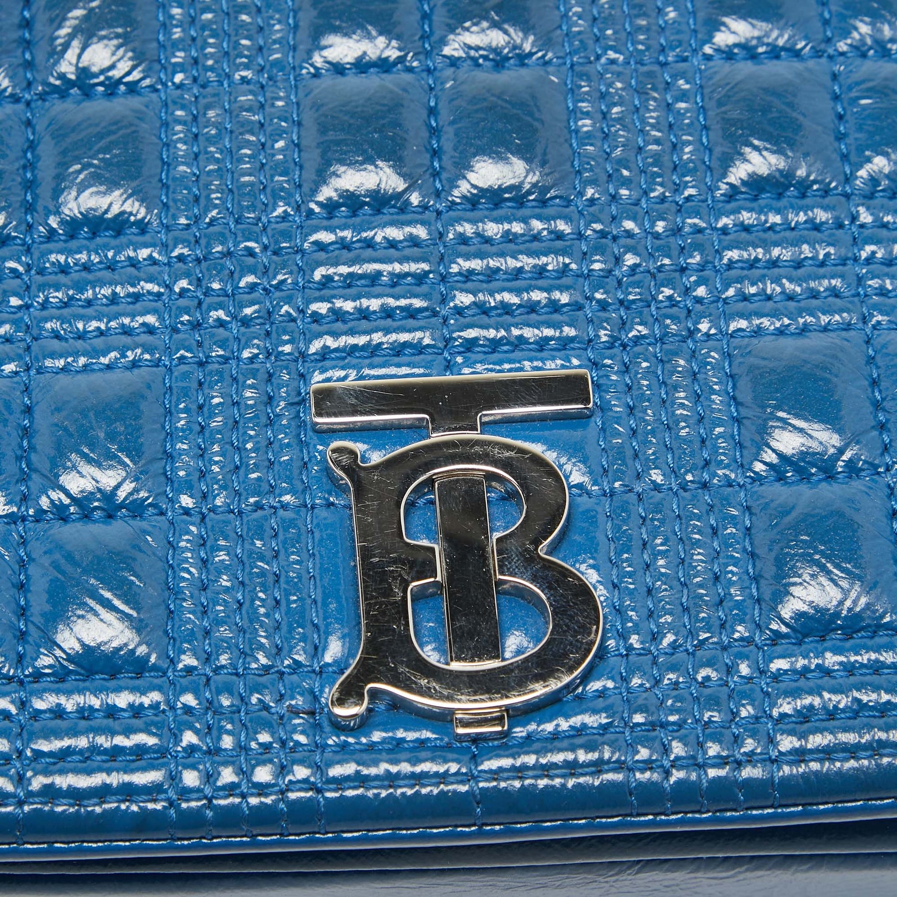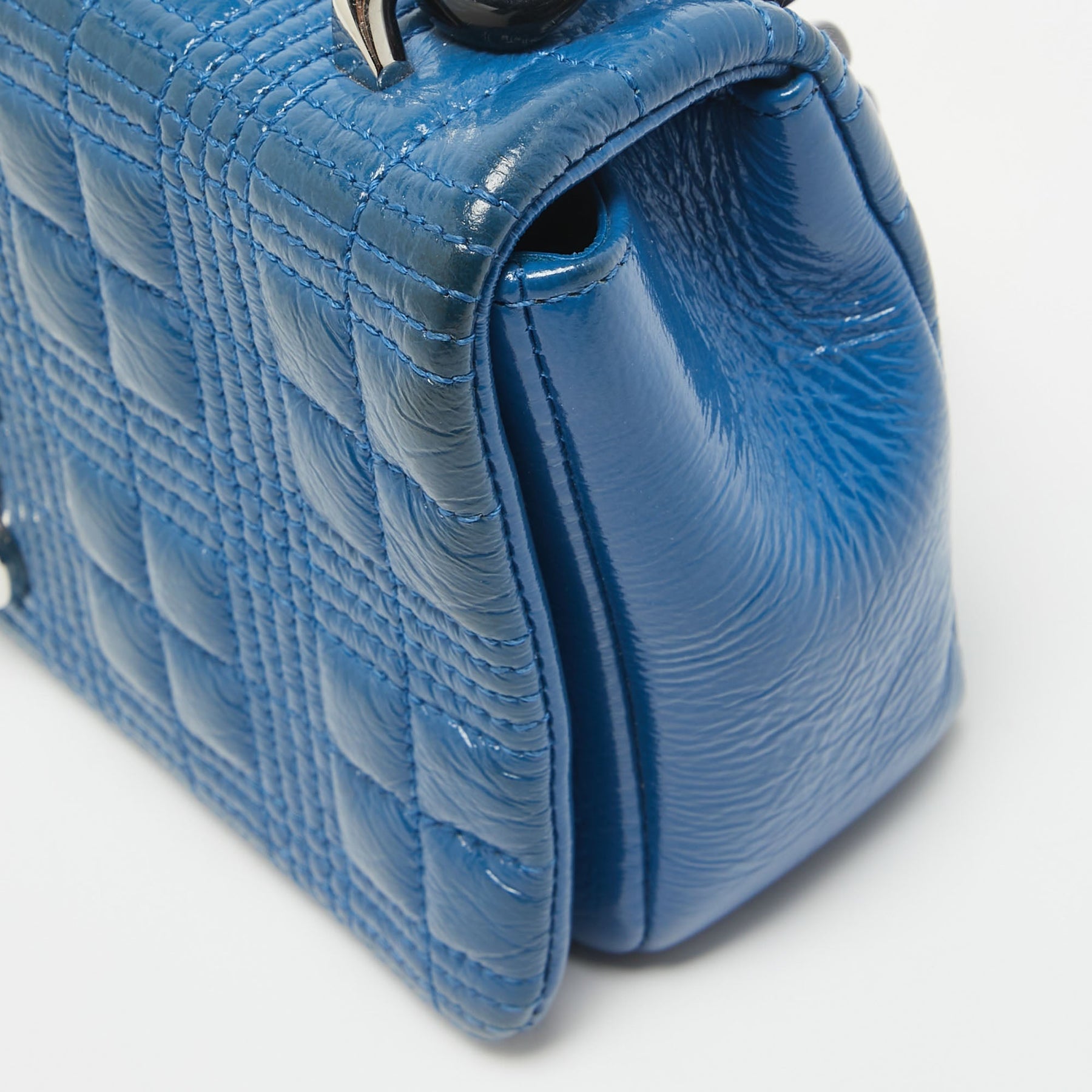 BURBERRY Warm Royal Blue Quilted Patent Leather Small Lola Chain Shoulder Bag