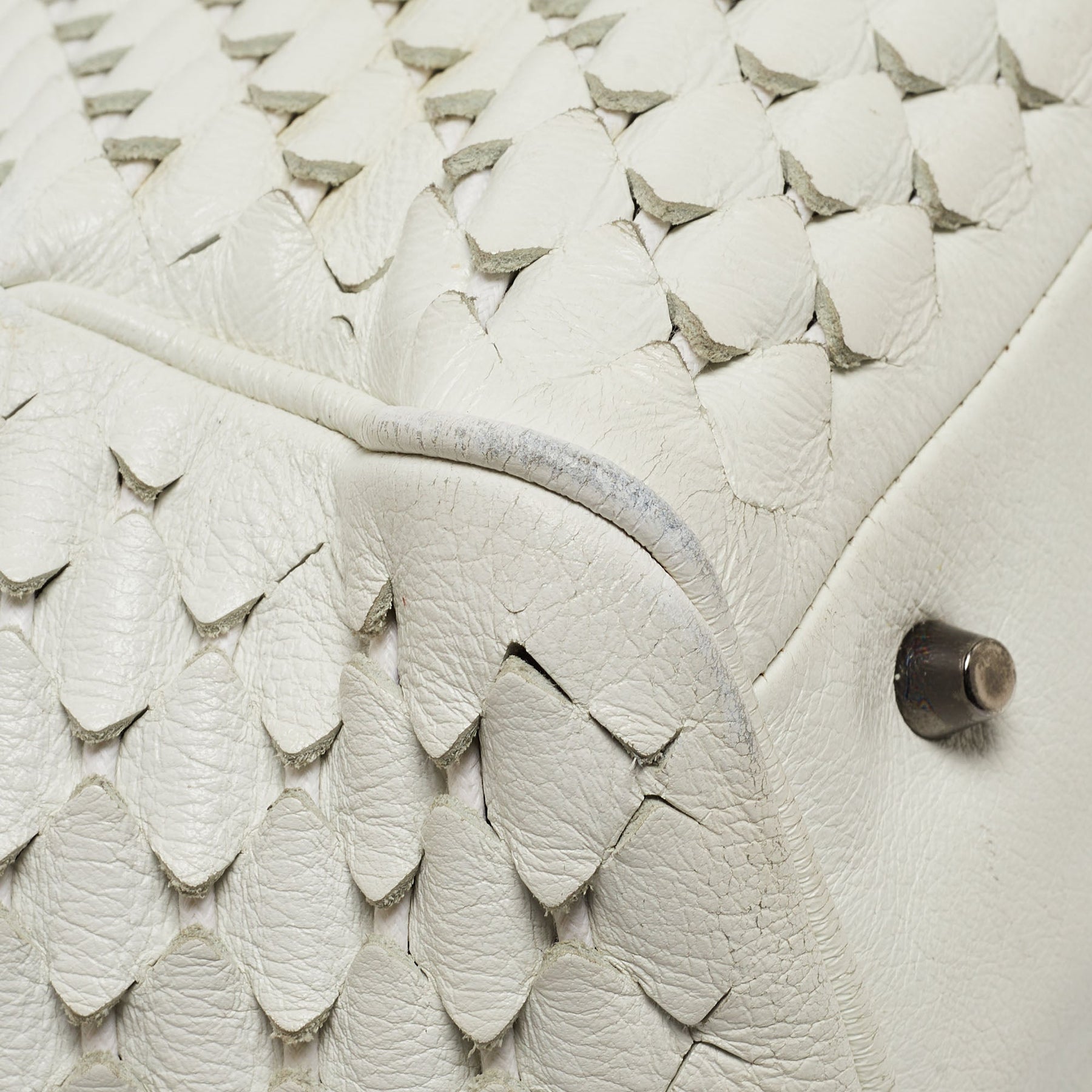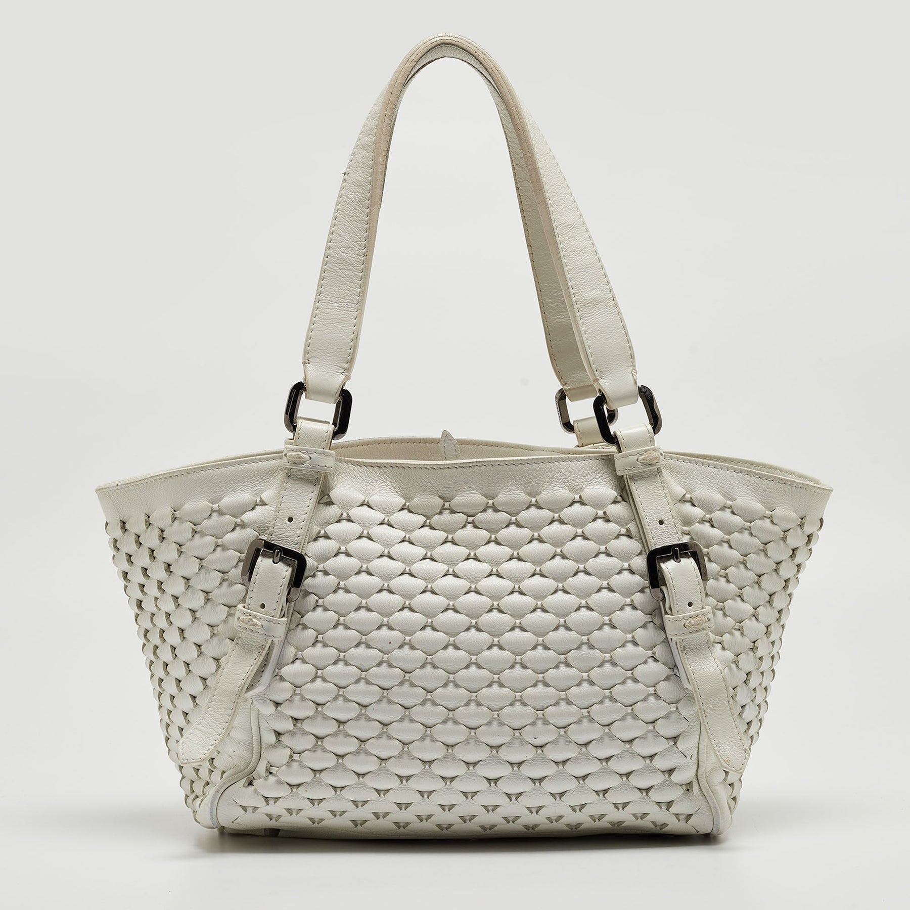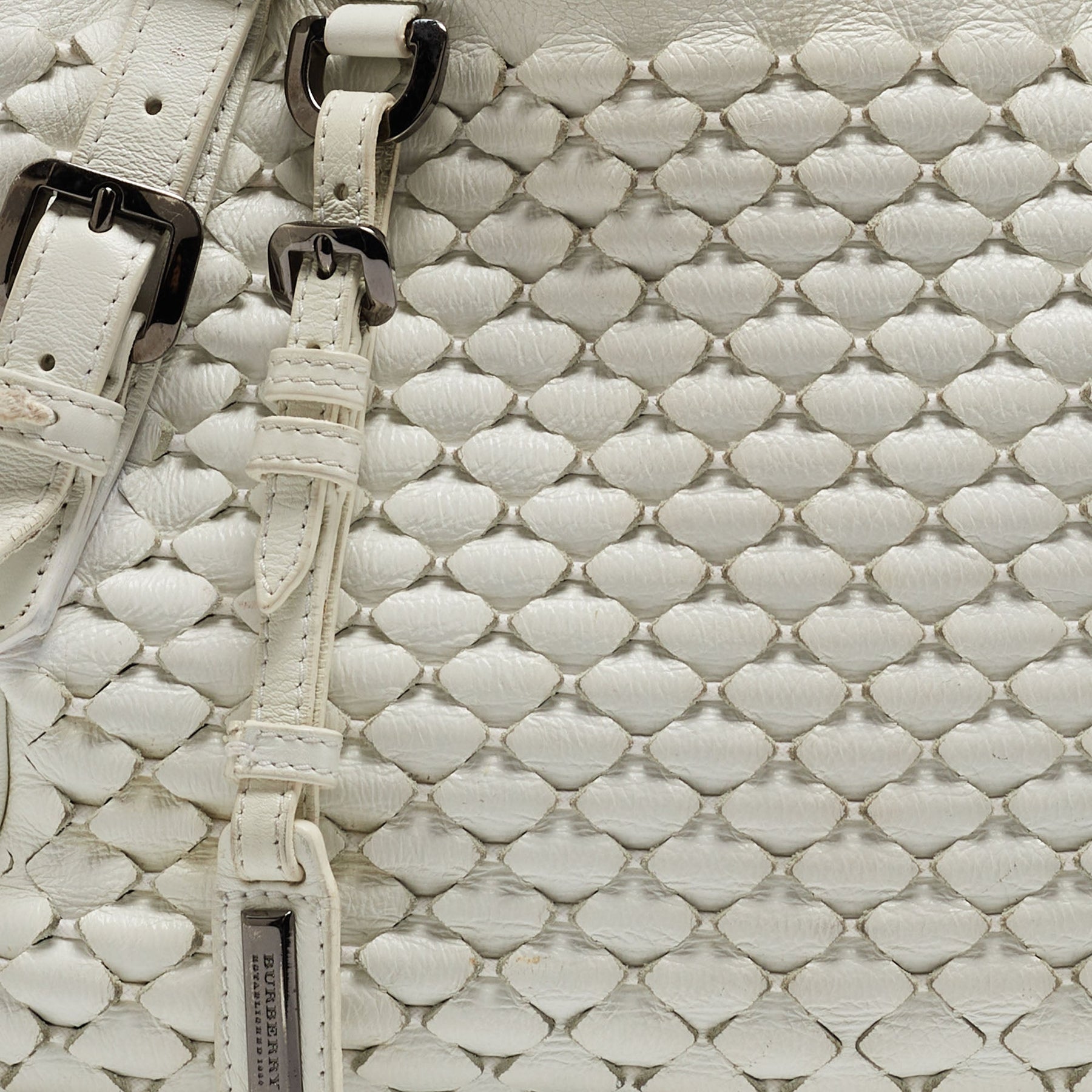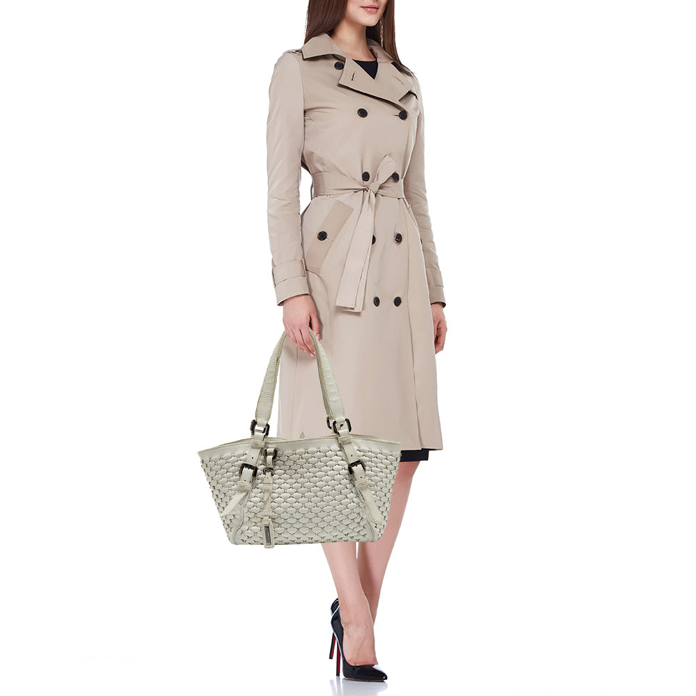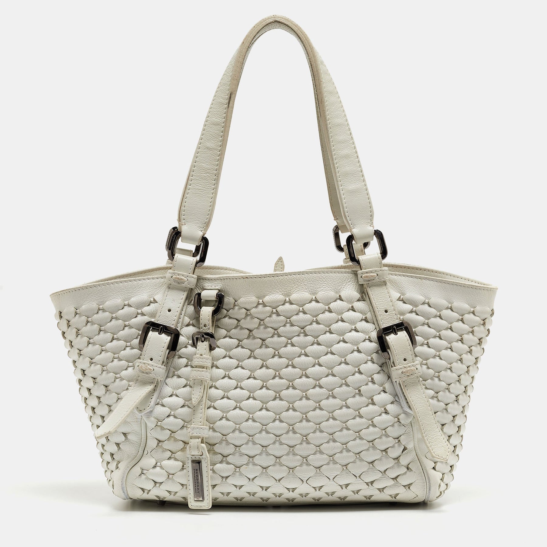 BURBERRY White Woven Leather Tote