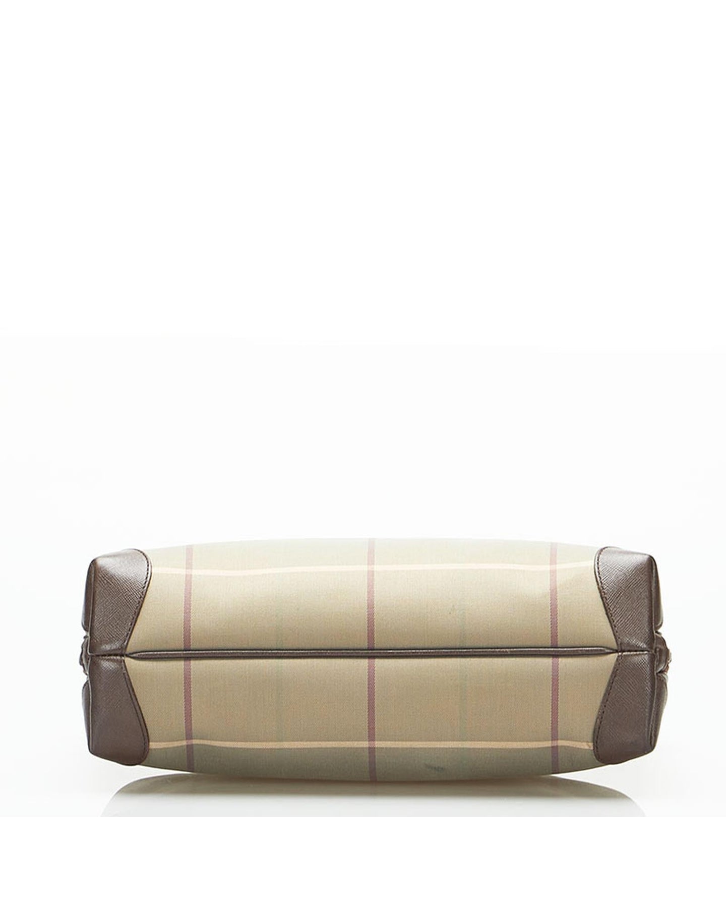 BURBERRY Women's Bronze Plaid Canvas Handbag - A Condition in Bronze