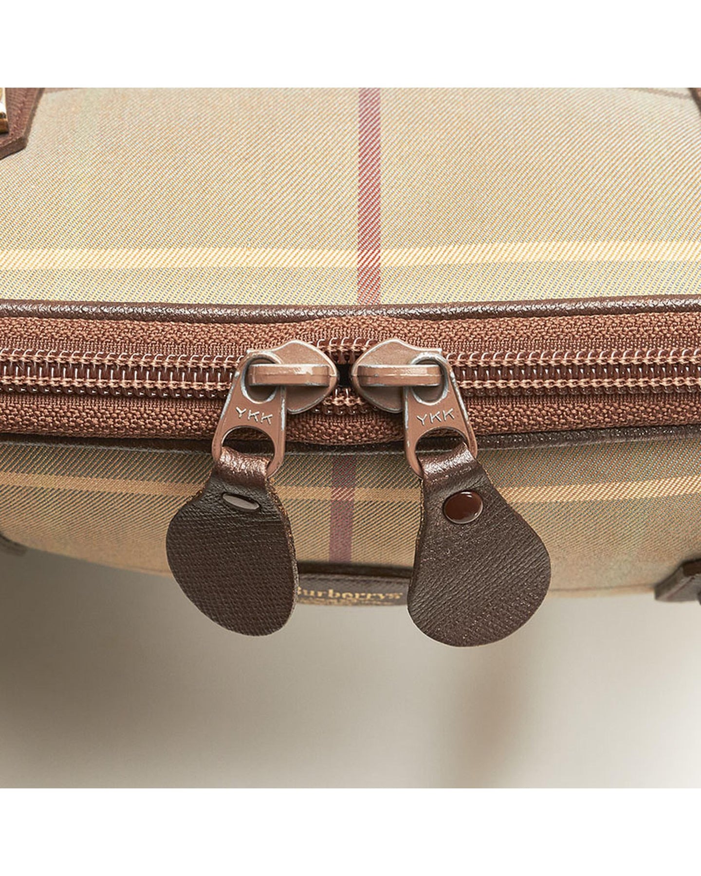 Made from durable canvas material Features the iconic Bronze Burberry Plaid pattern Compact size: W28cm x H25cm x D10cm x 12cm Excellent condition Designed for women Material: Canvas