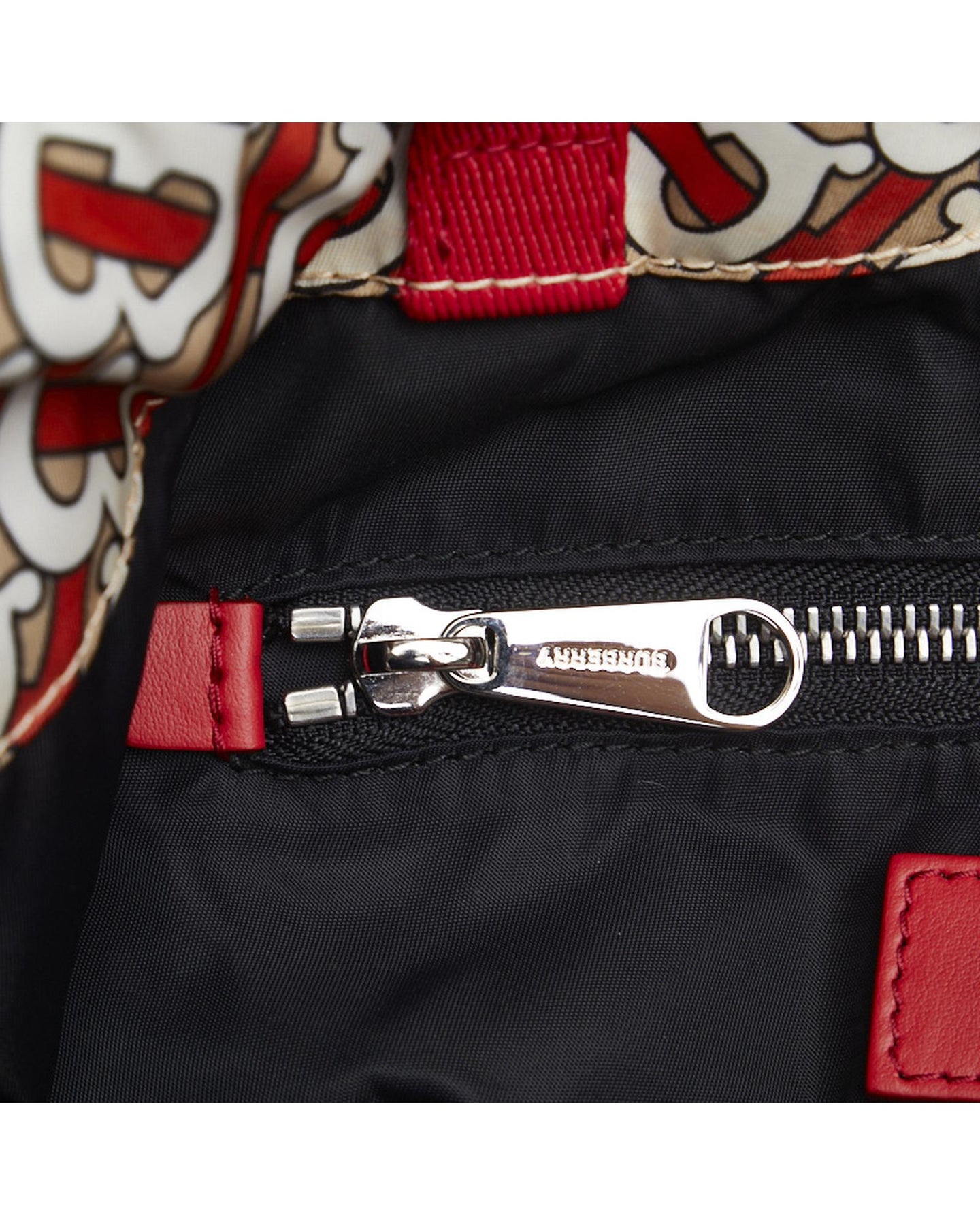 Red Burberry Nylon Monogram Drawstring Backpack Bag Size: 40-47-1-66 Condition: A Lightweight and Stylish Ideal for Daily Commute or Travel Designed for Women Material: Nylon