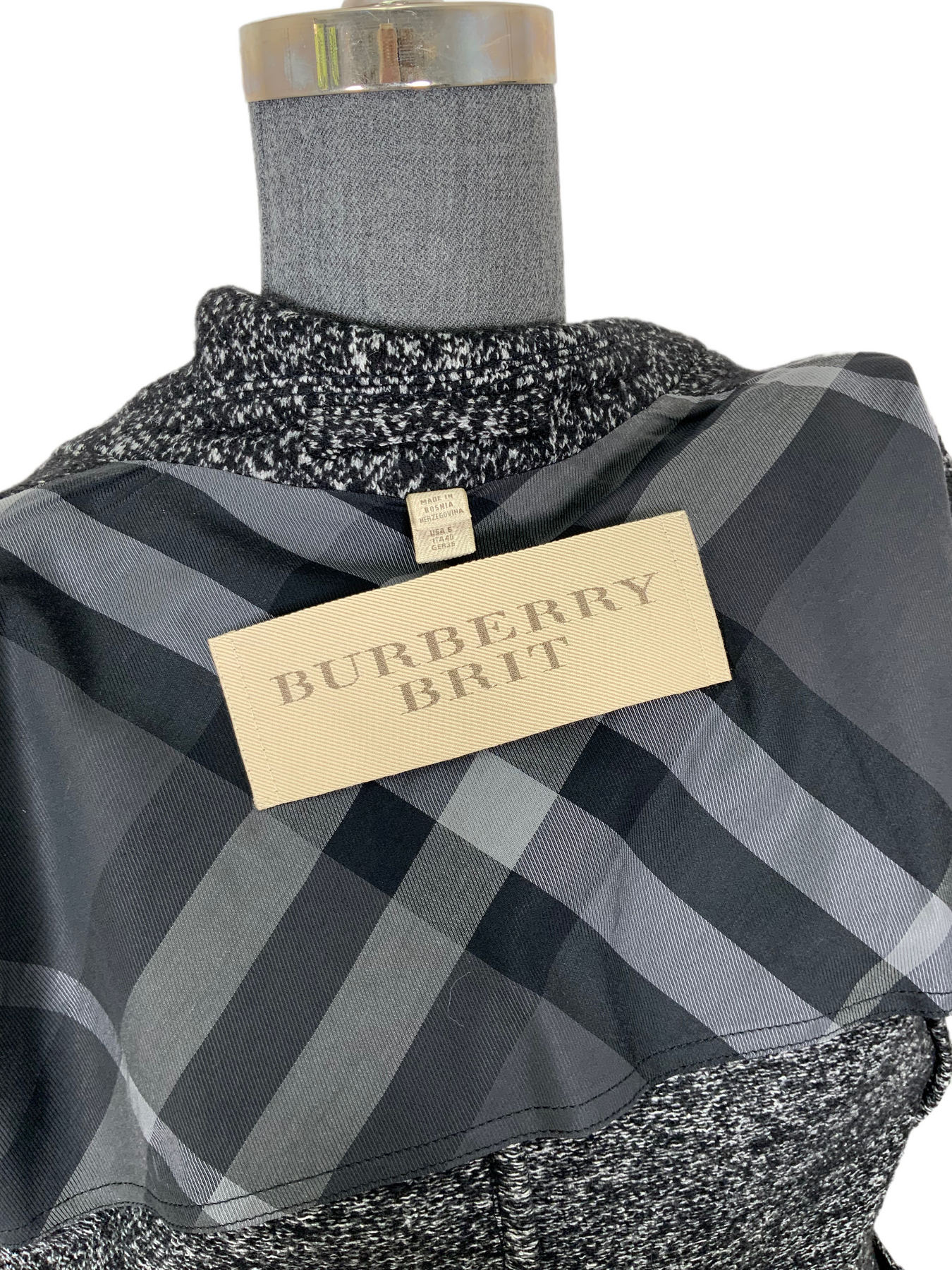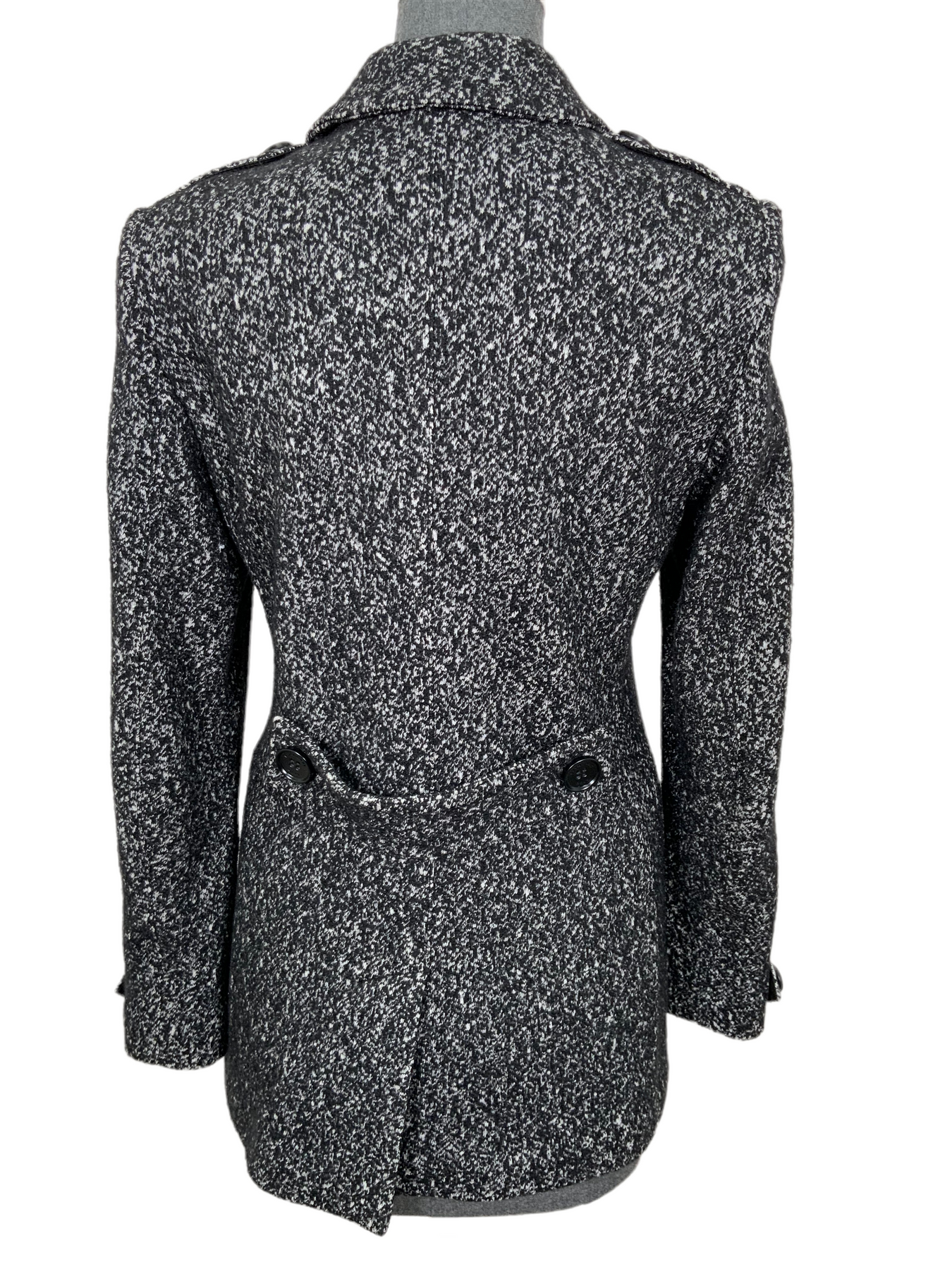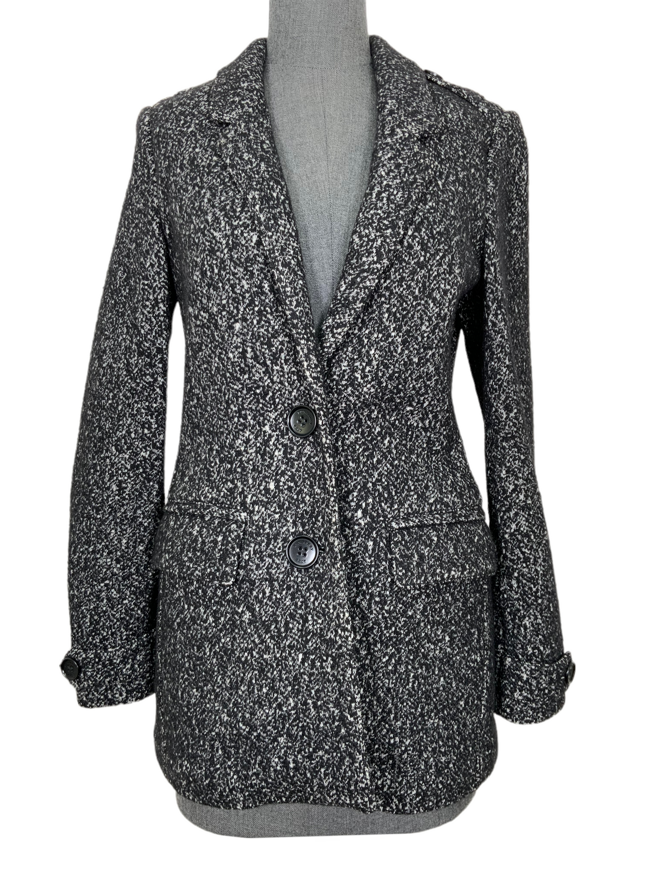We the ity of this brand new Burberry Wool Blazer Jacket Size M (US 6) beautifully crafted from a black and white cotton and wool-blend. This blazer is tailored slim and features fa notched collar, two patch pockets and front button fastenings.