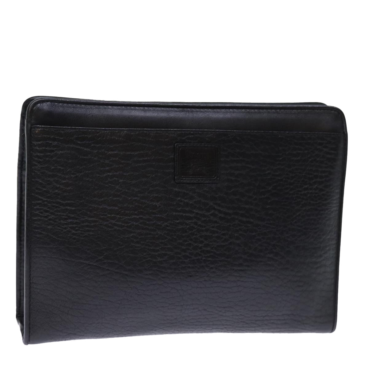 BurberrySs Clutch Bag Leather Black Auth bs14320