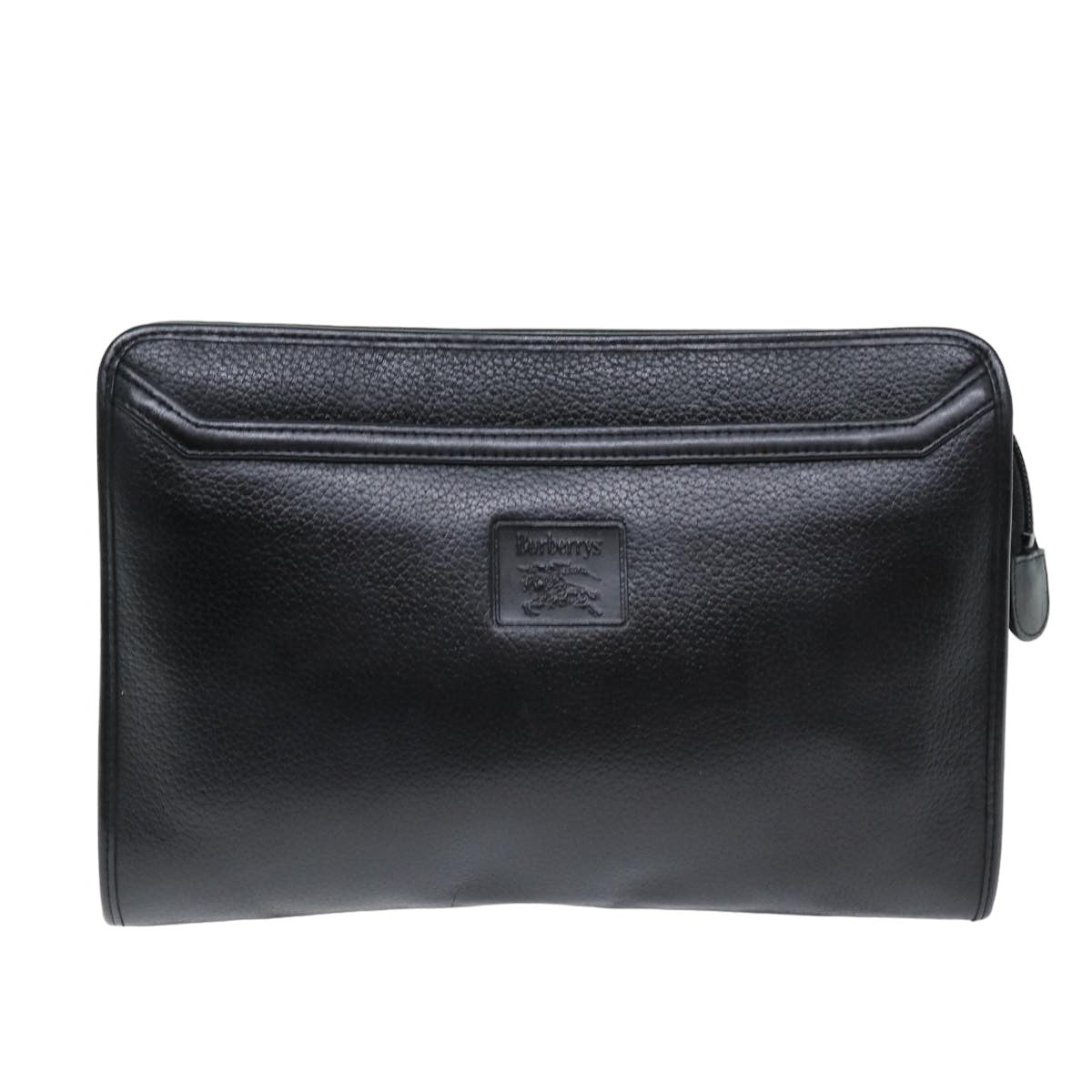 BURBERRYSs Clutch Bag Leather Black Auth bs14647