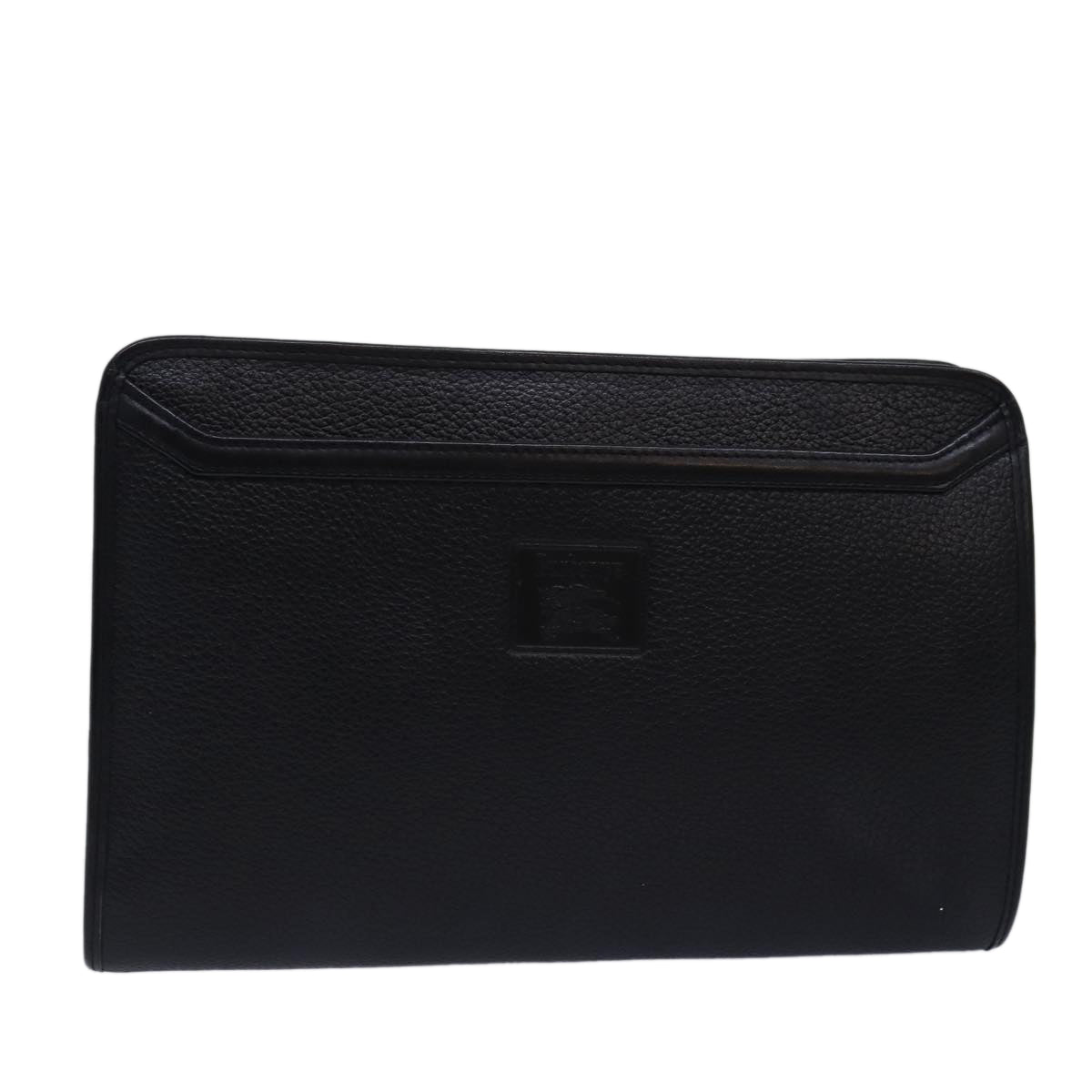 BURBERRYSs Clutch Bag Leather Black Auth bs15137