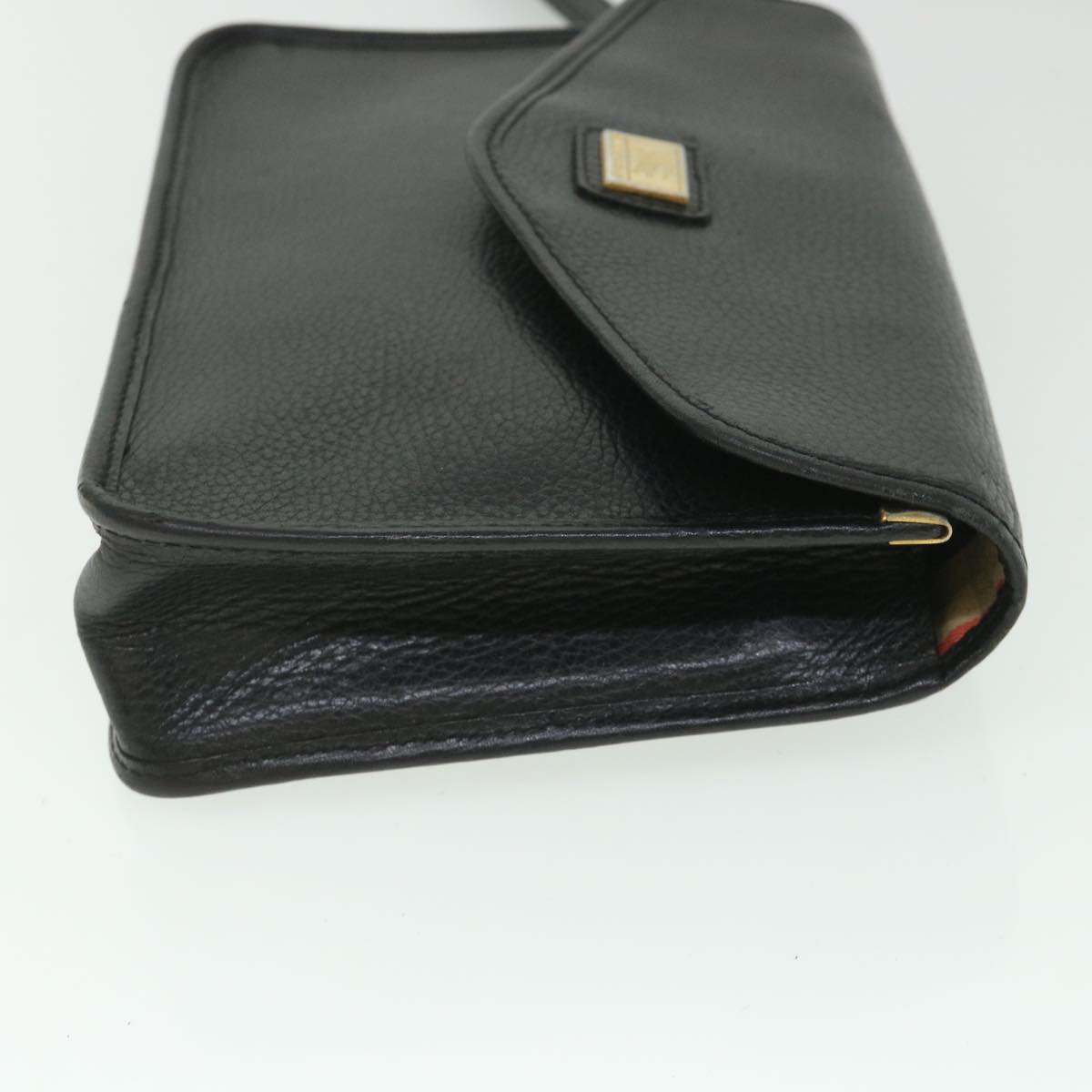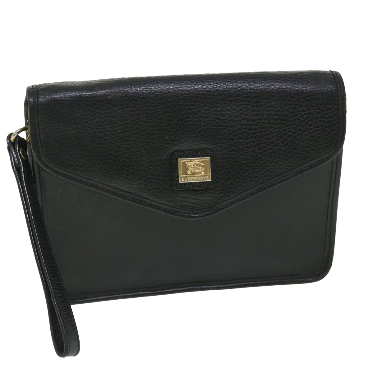 BURBERRYSs Clutch Bag Leather Black Auth bs8730