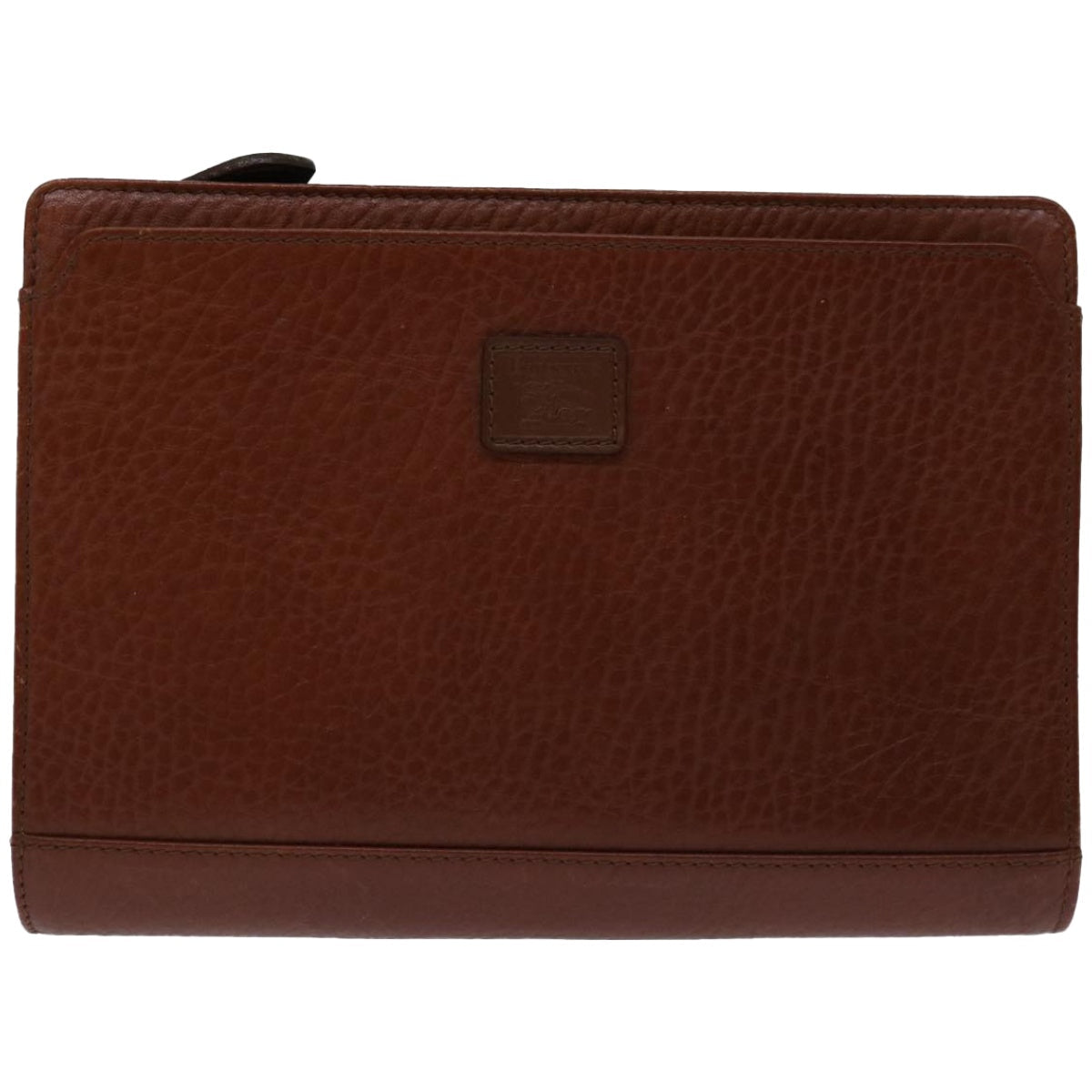 BURBERRYSs Clutch Bag Leather Brown Auth bs12180