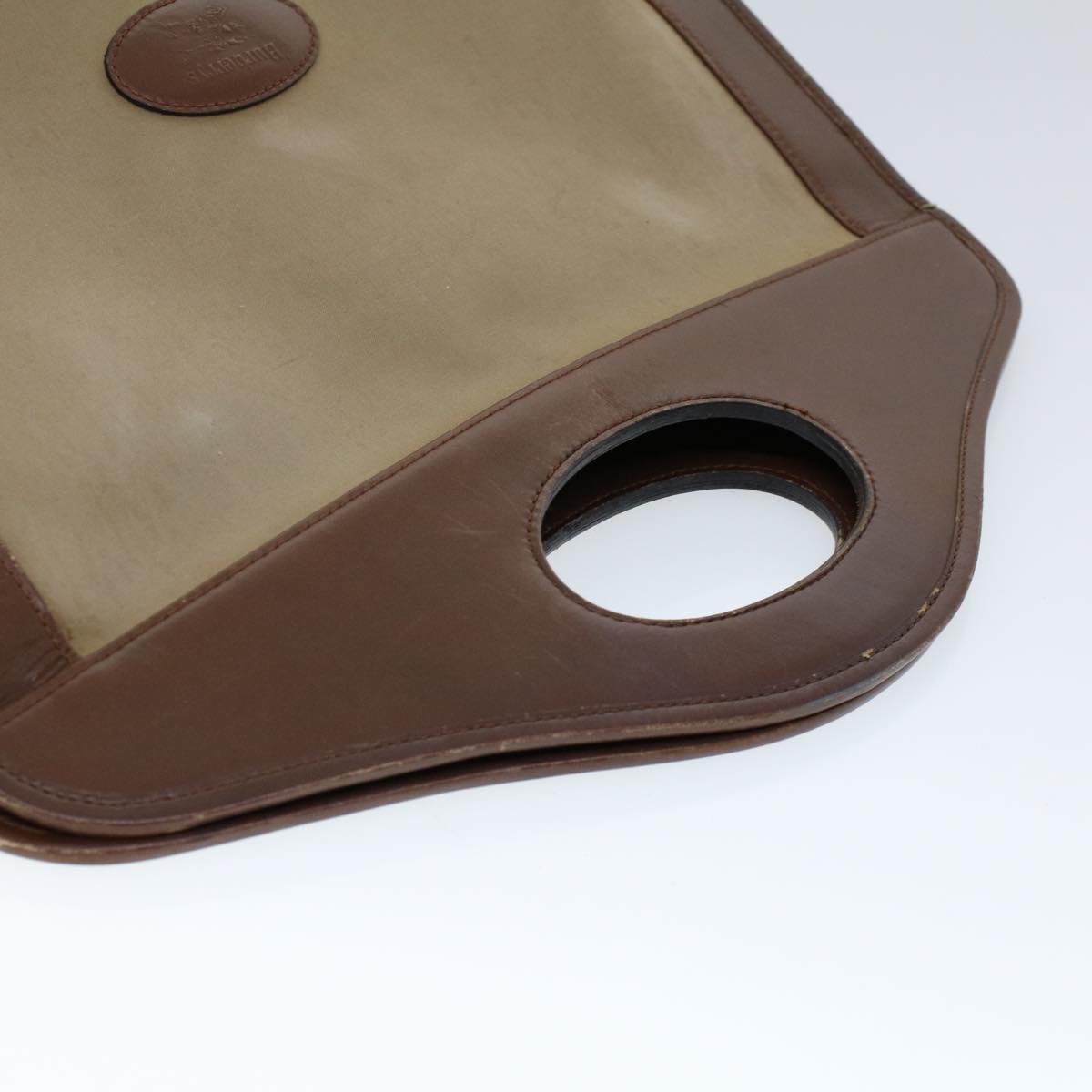 BURBERRYSs Hand Bag Canvas Leather Brown Beige Auth ti1227