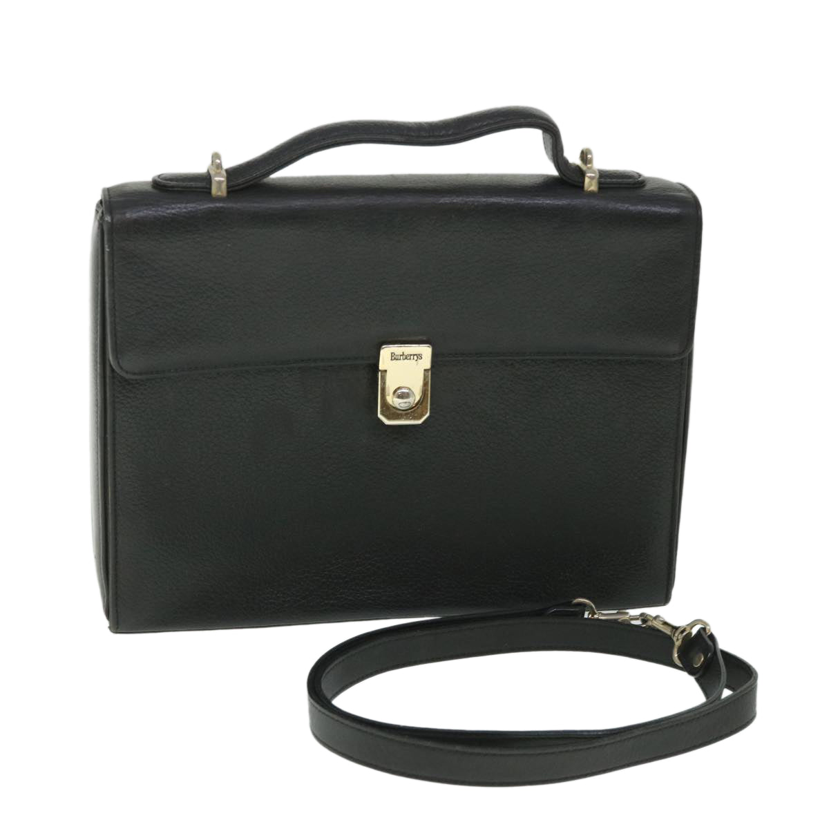 BURBERRYSs Hand Bag Leather 2way Black Auth bs8729