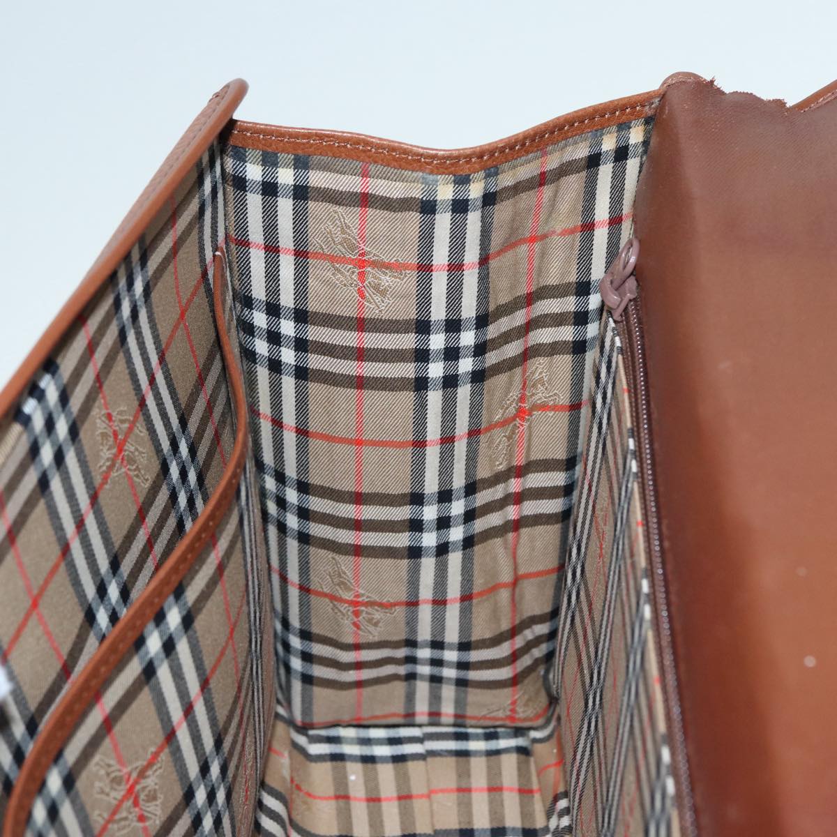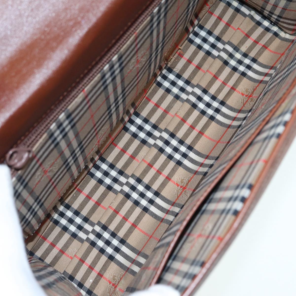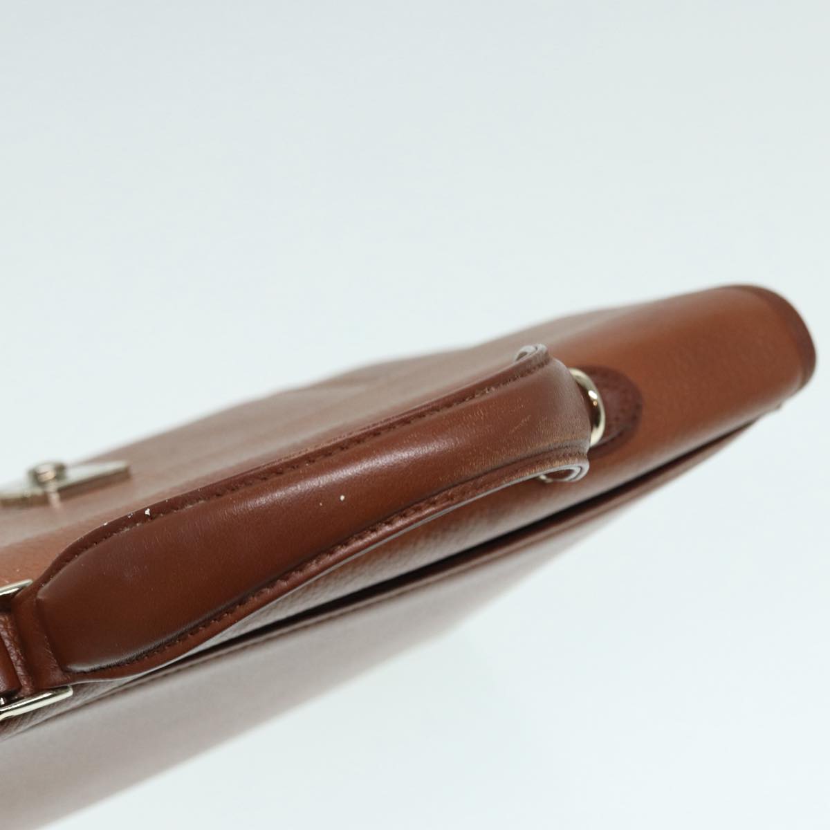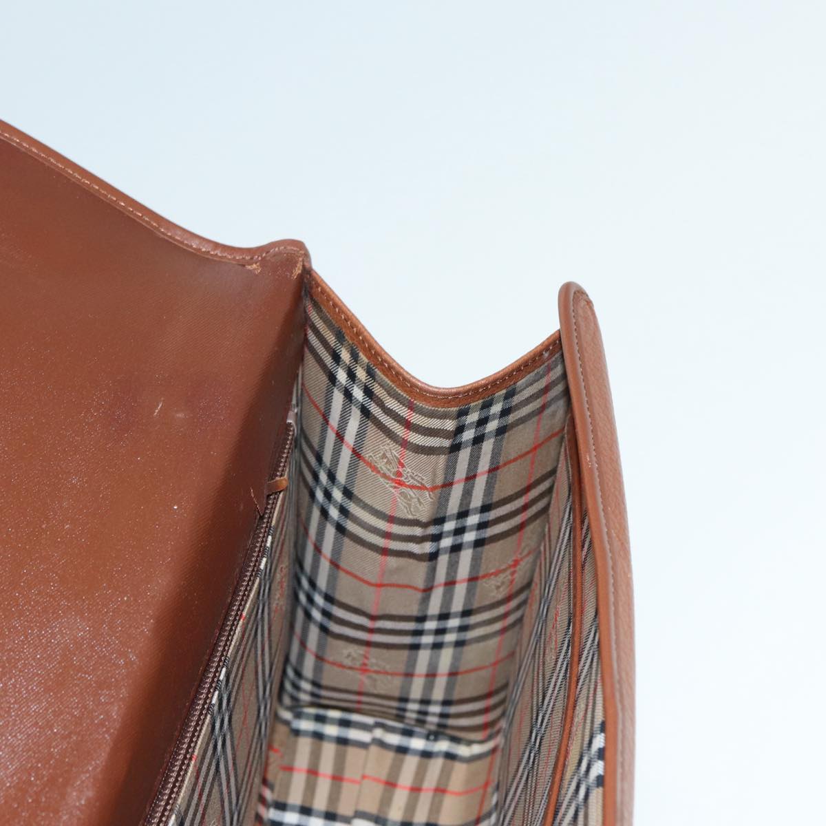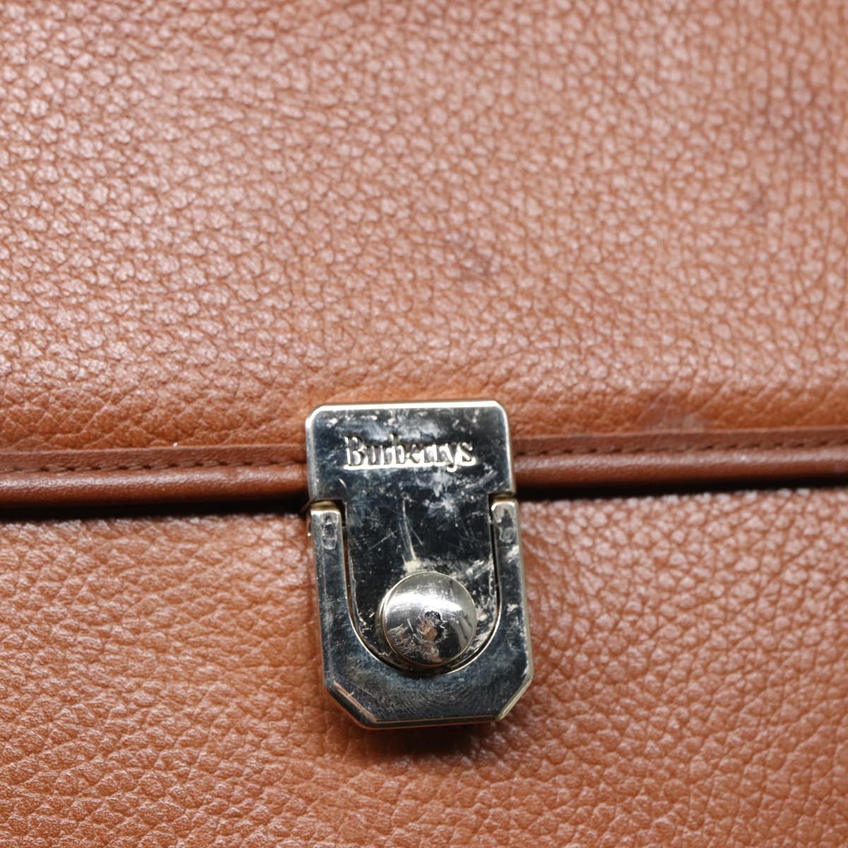 BURBERRYSs Hand Bag Leather 2way Brown Silver Auth bs17329