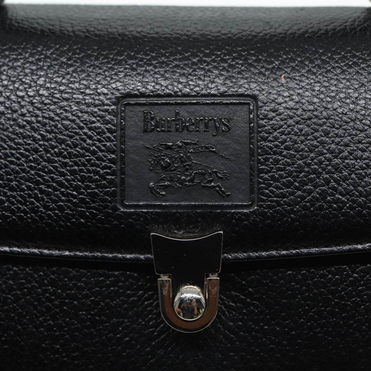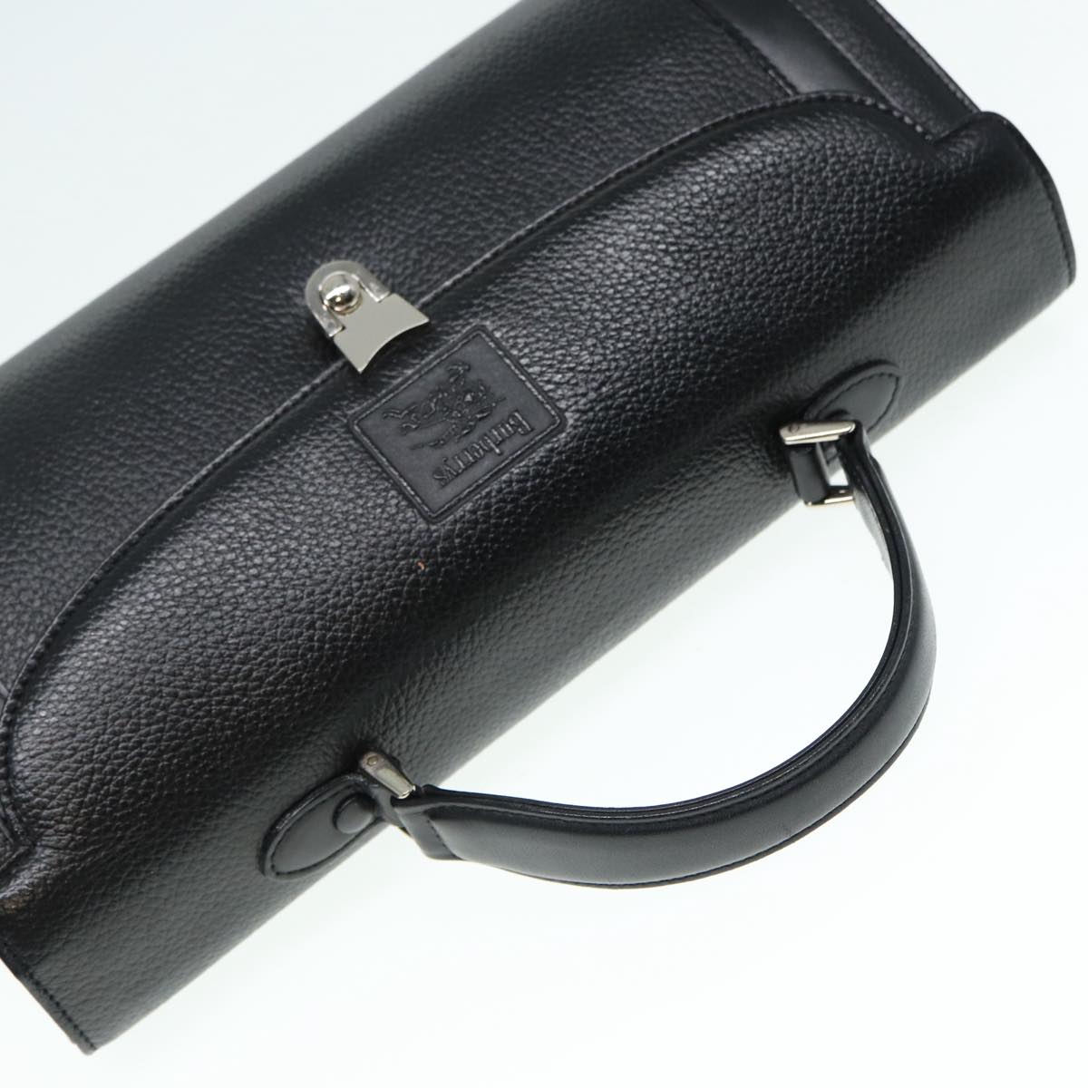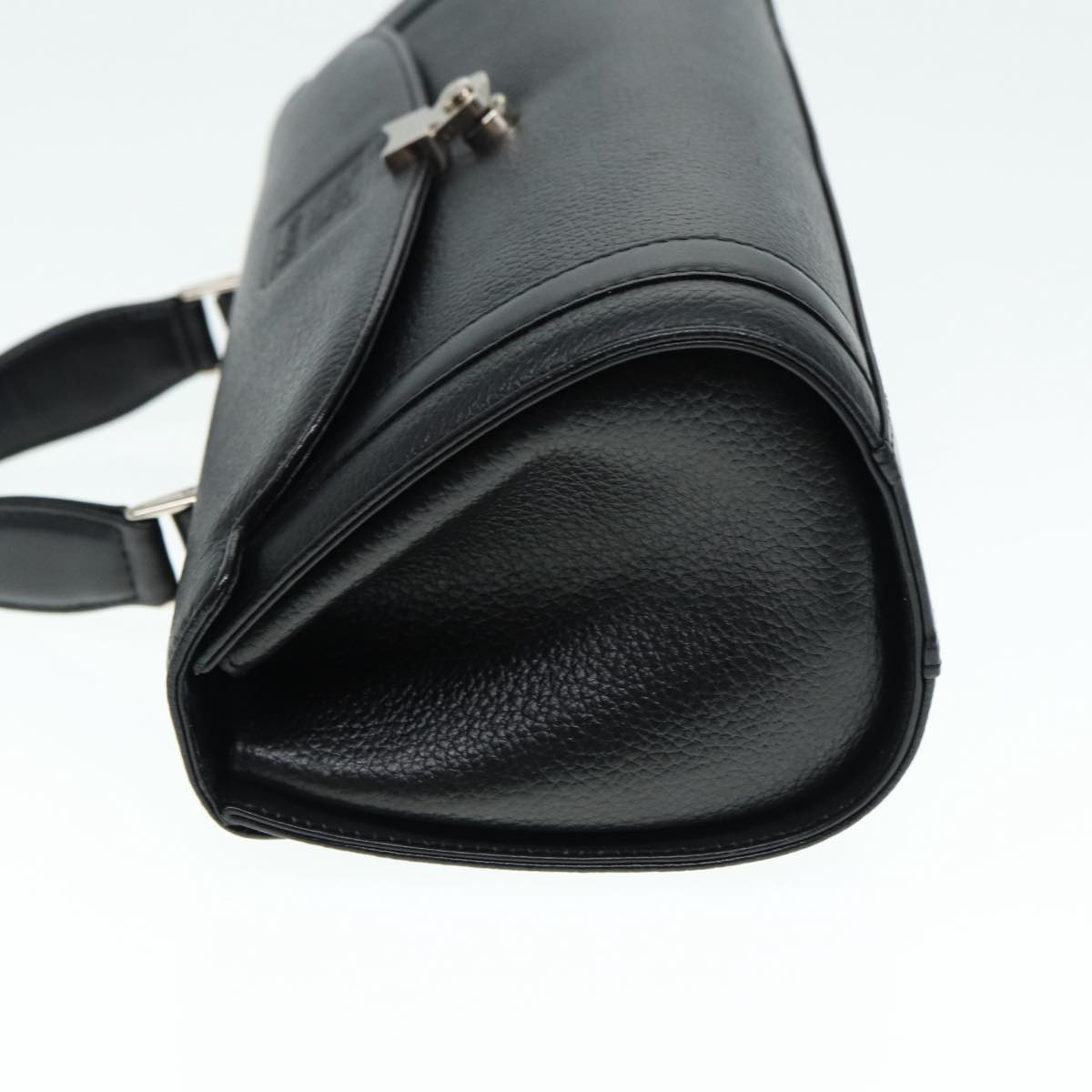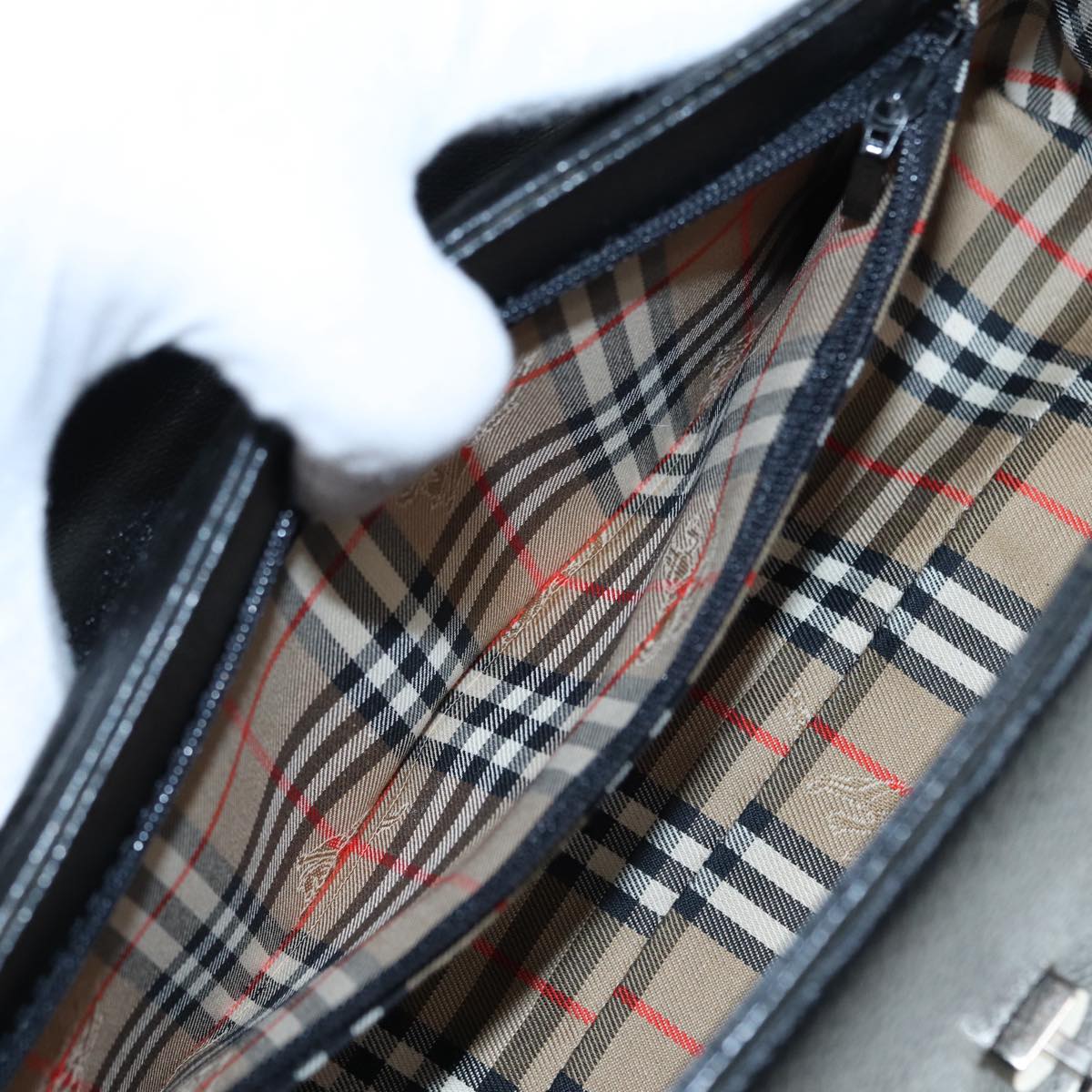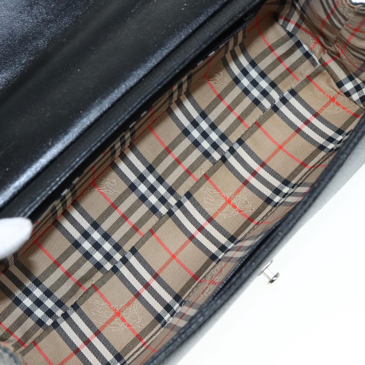 BURBERRYSs Hand Bag Leather Black Silver Auth 88770