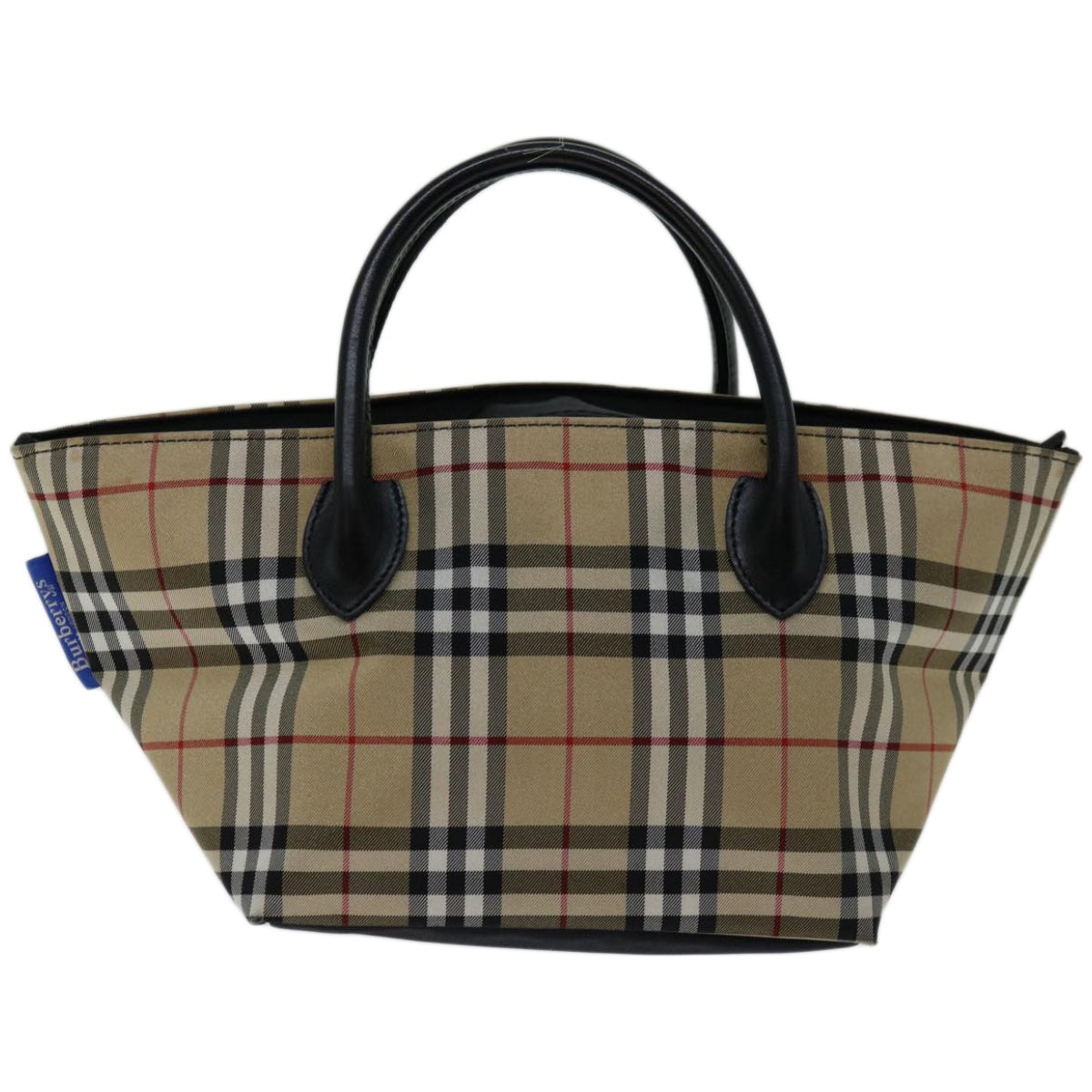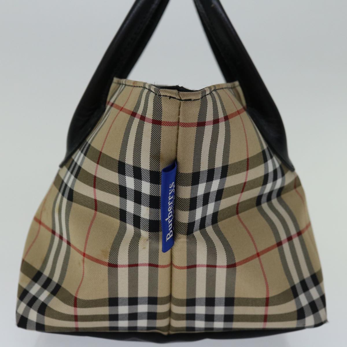 BURBERRYSs Nova Check Blue Label Hand Bag Nylon Beige Auth bs12386