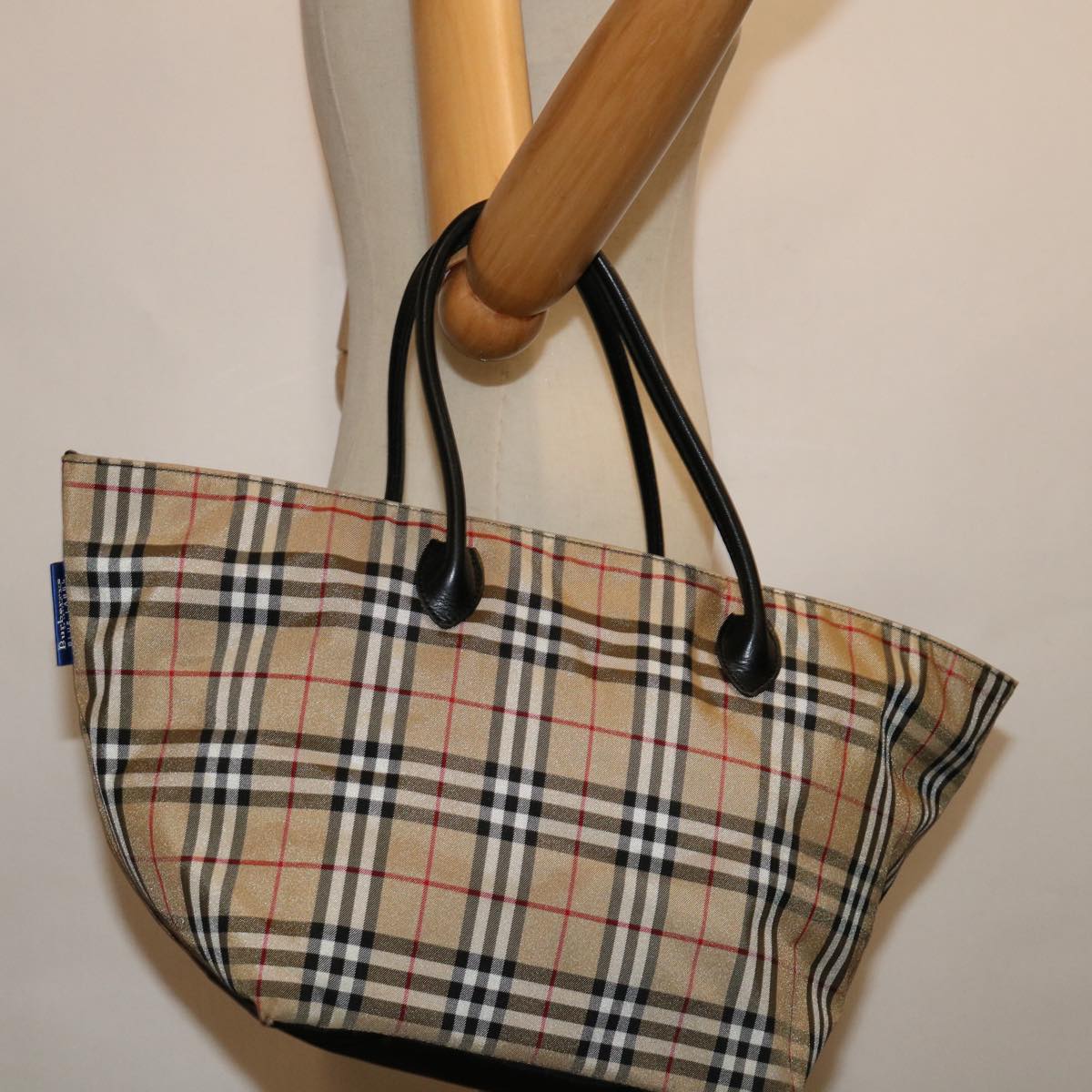 BURBERRYSs Nova Check Blue Label Hand Bag Nylon Beige Auth bs13235