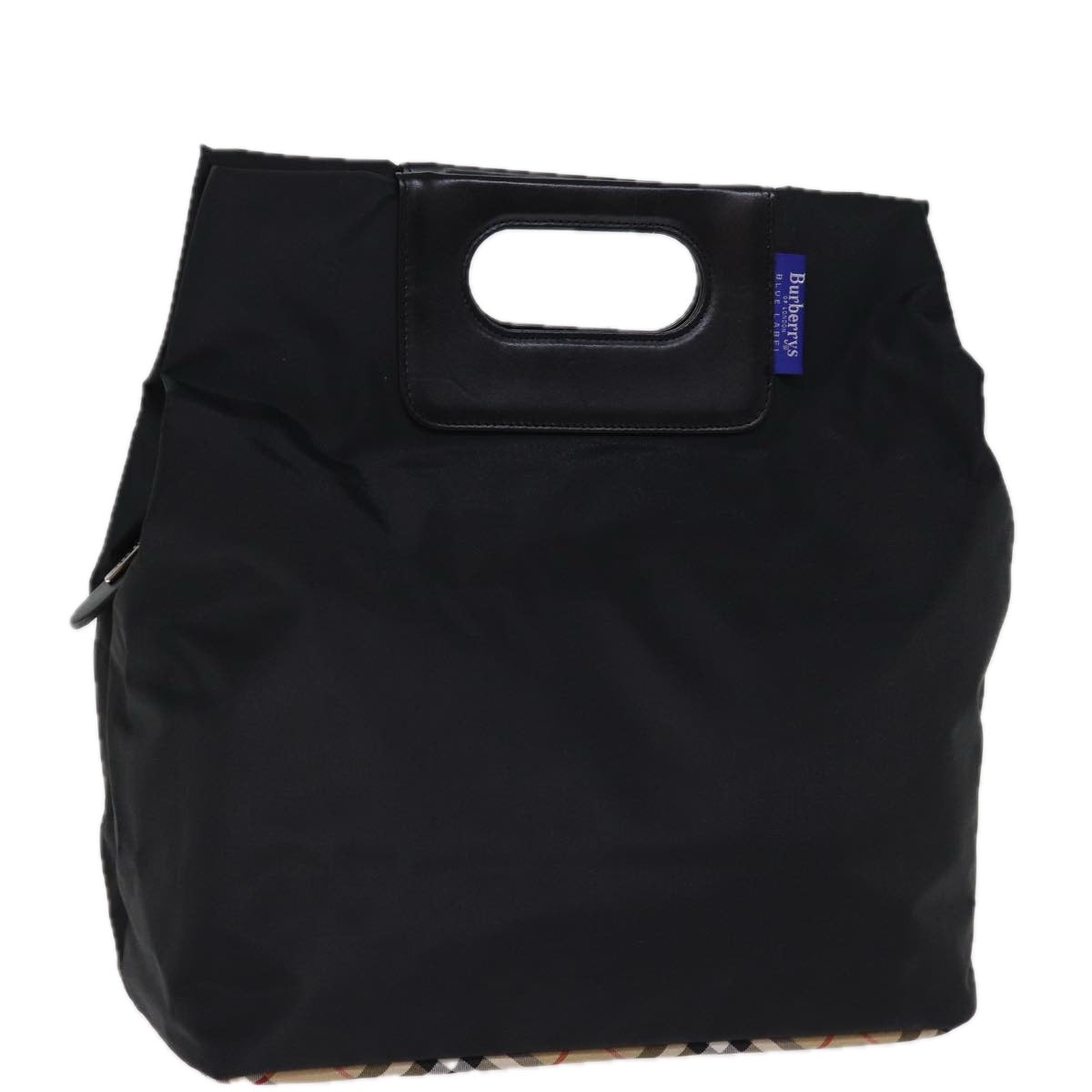 BURBERRYSs Nova Check Blue Label Hand Bag Nylon Black Beige Auth bs14388