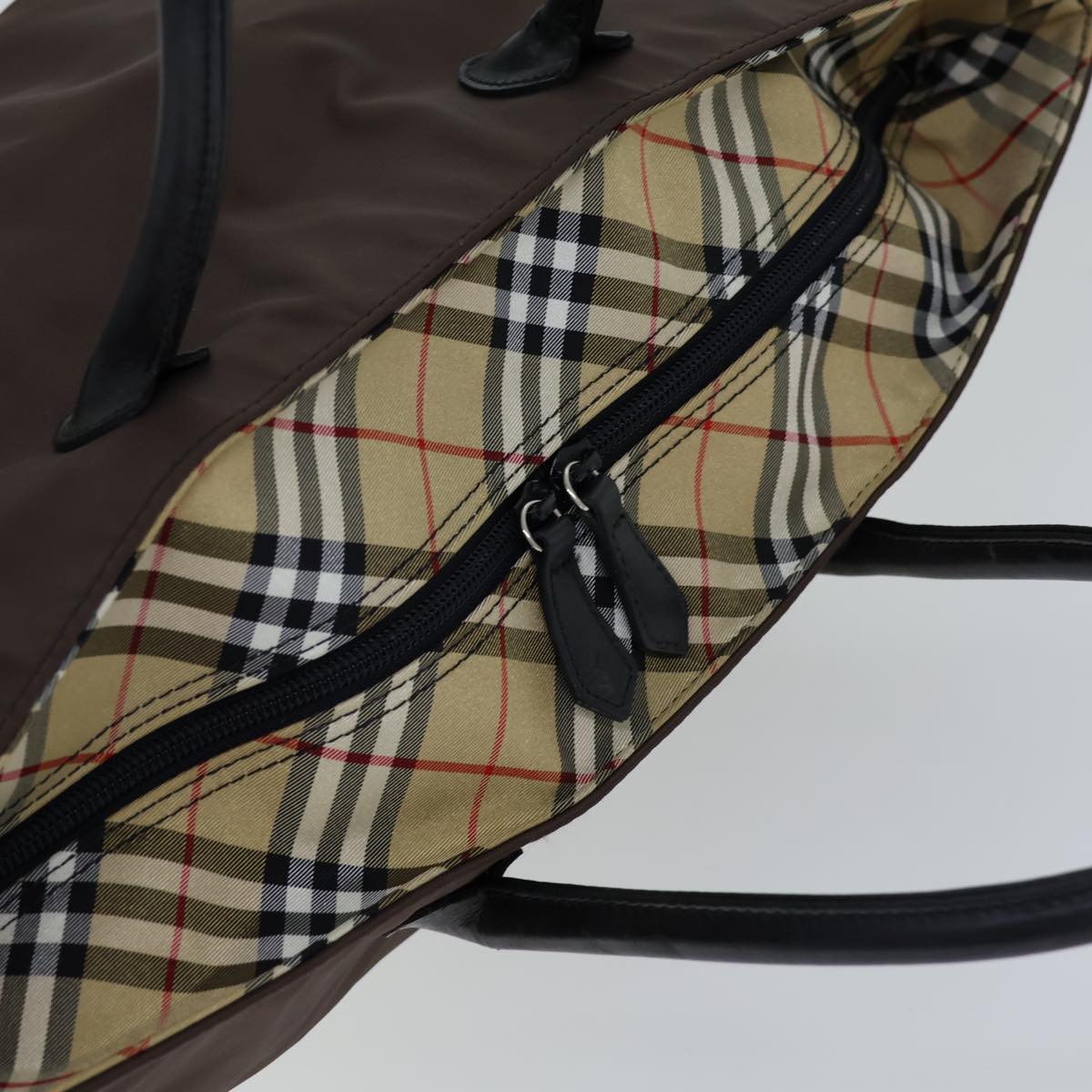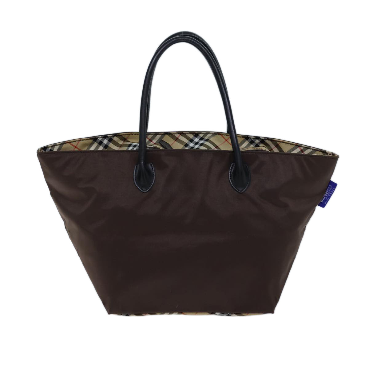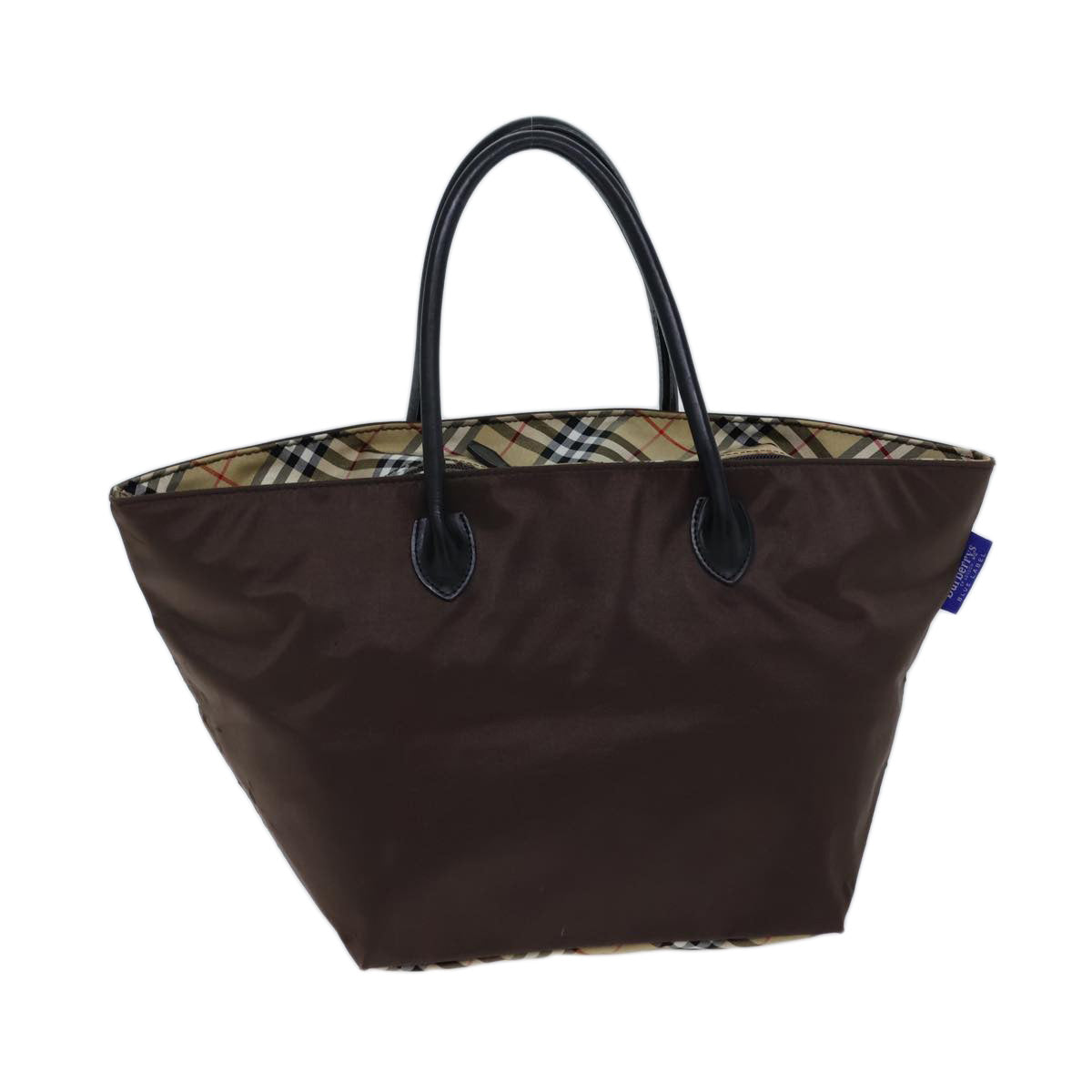 BURBERRYSs Nova Check Blue Label Hand Bag Nylon Brown Black Auth bs13693