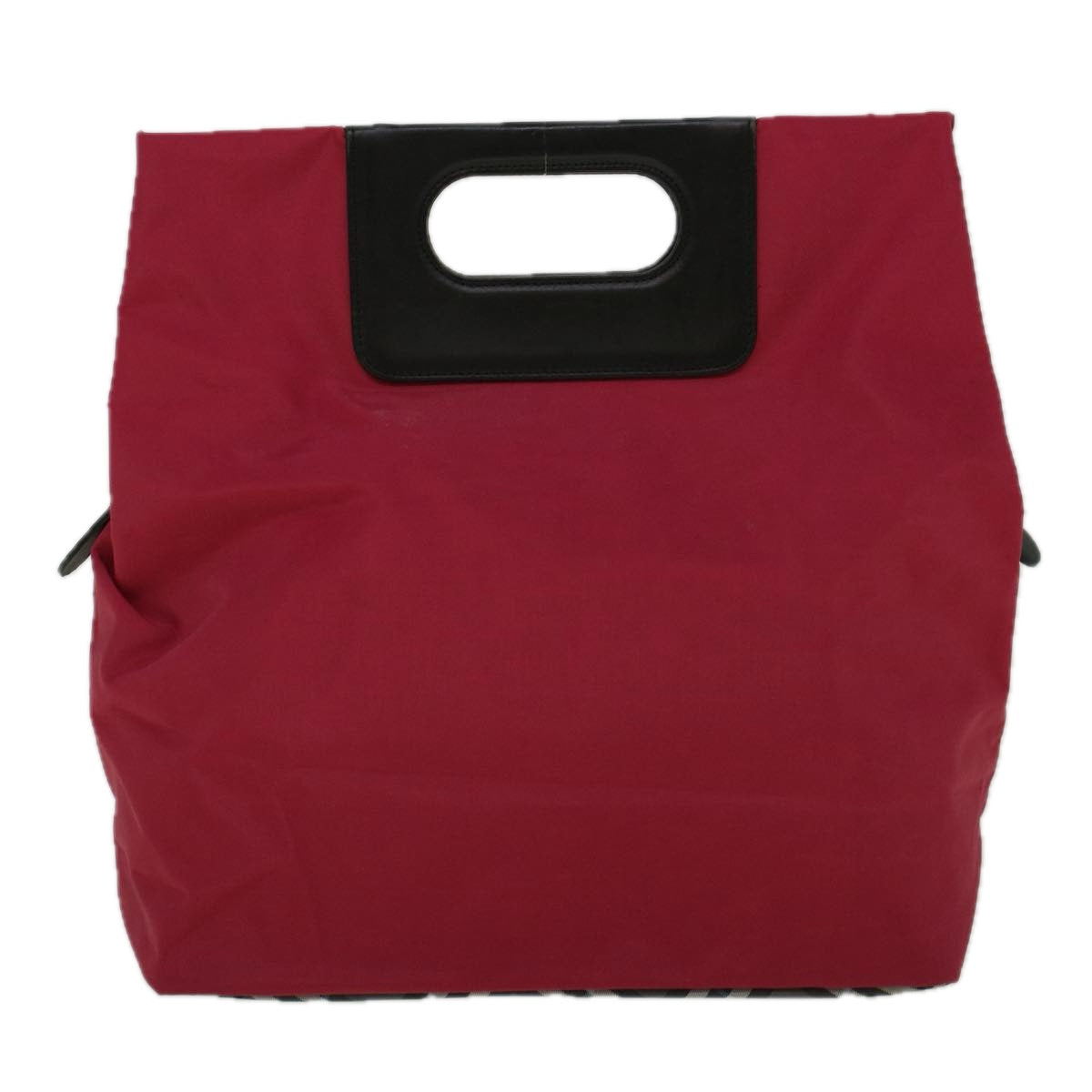 BURBERRYSs Nova Check Blue Label Hand Bag Nylon Red Gray Auth bs8760