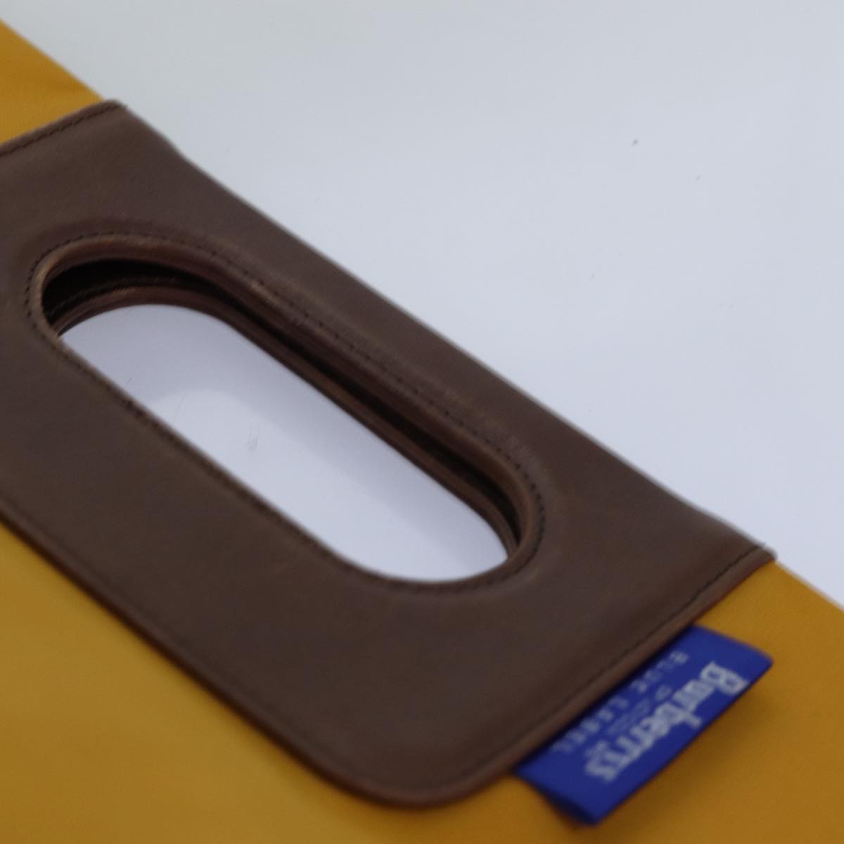 BURBERRYSs Nova Check Blue Label Hand Bag Nylon Yellow Auth bs14254