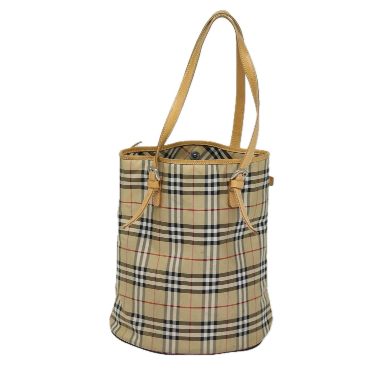BURBERRYSs Nova Check Blue Label Shoulder Bag Canvas Beige Auth 81140