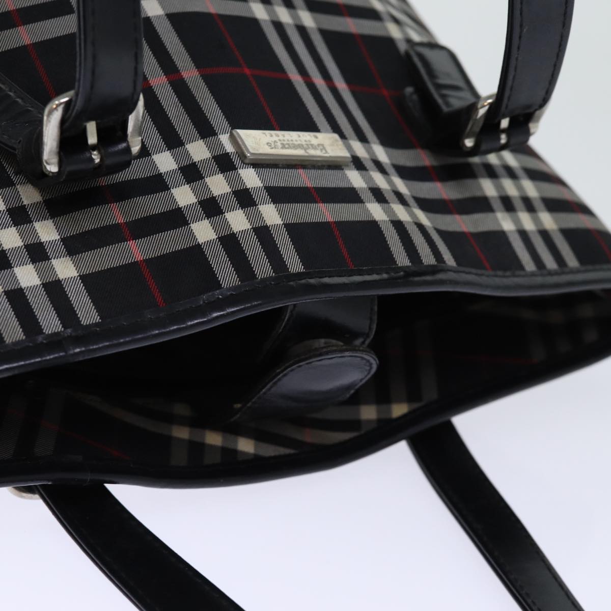BURBERRYSs Nova Check Blue Label Shoulder Bag Canvas Black Auth bs13816