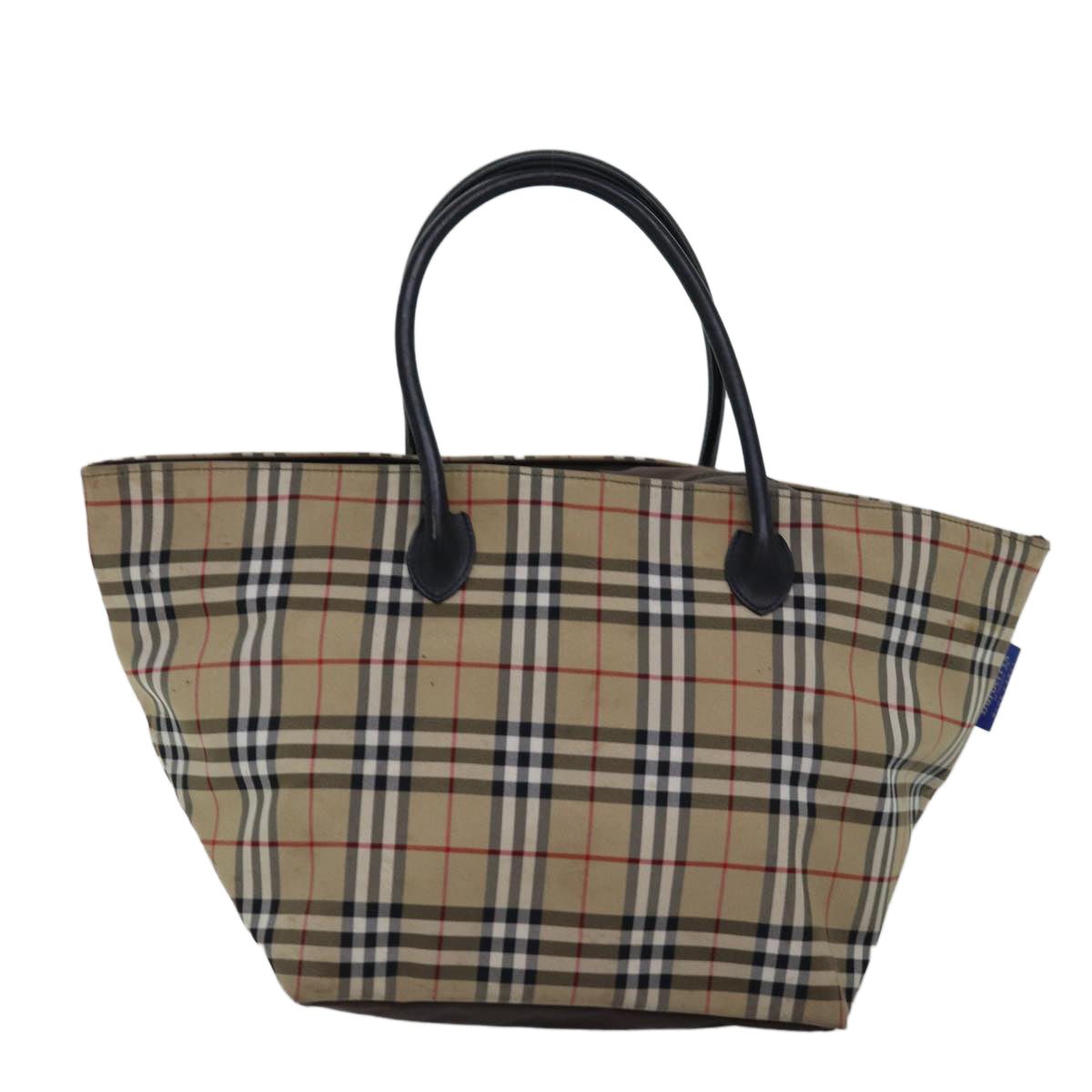 BURBERRYSs Nova Check Blue Label Tote Bag Nylon Beige Auth bs15244