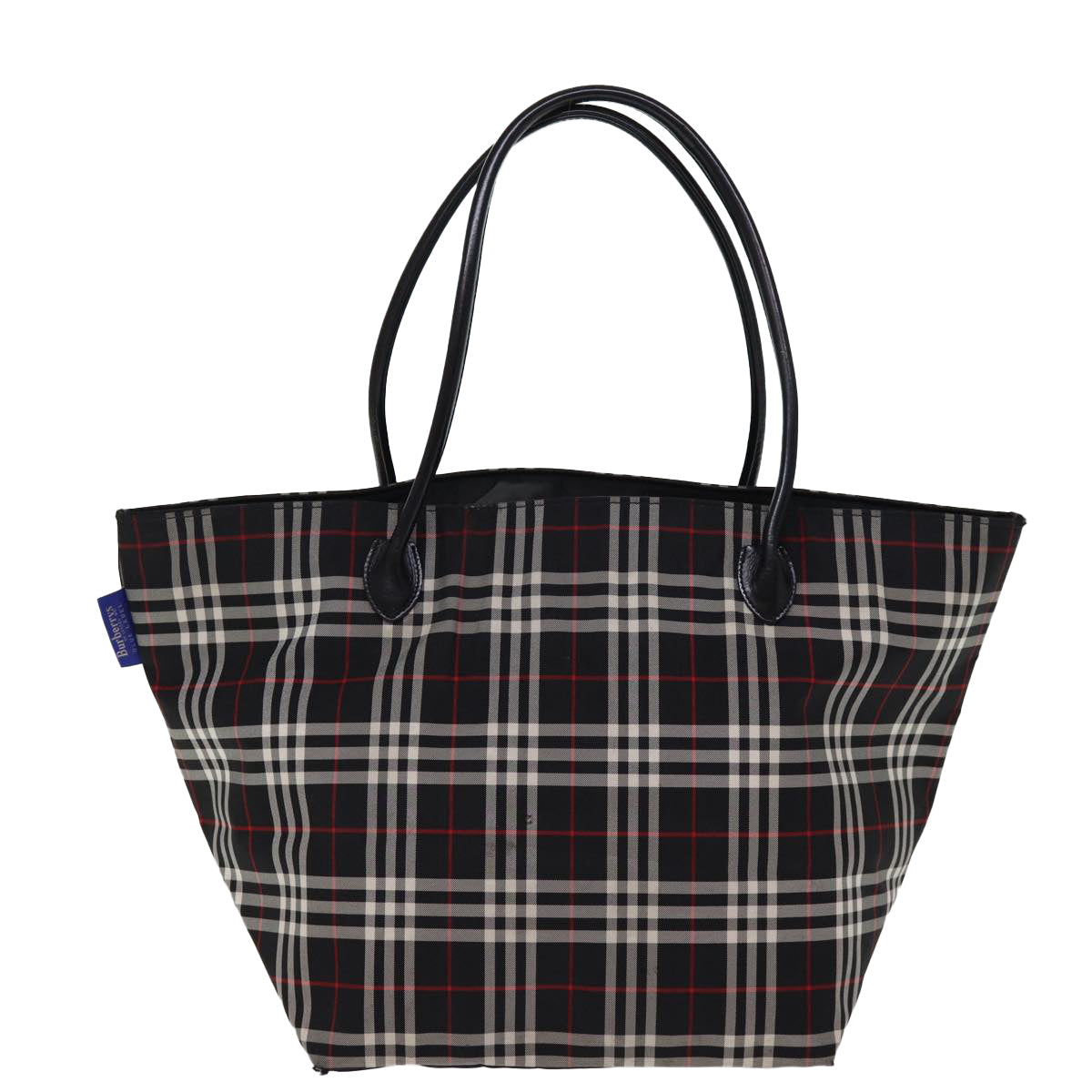 BurberrySs Nova Check Blue Label Tote Bag Nylon Black Auth kk241