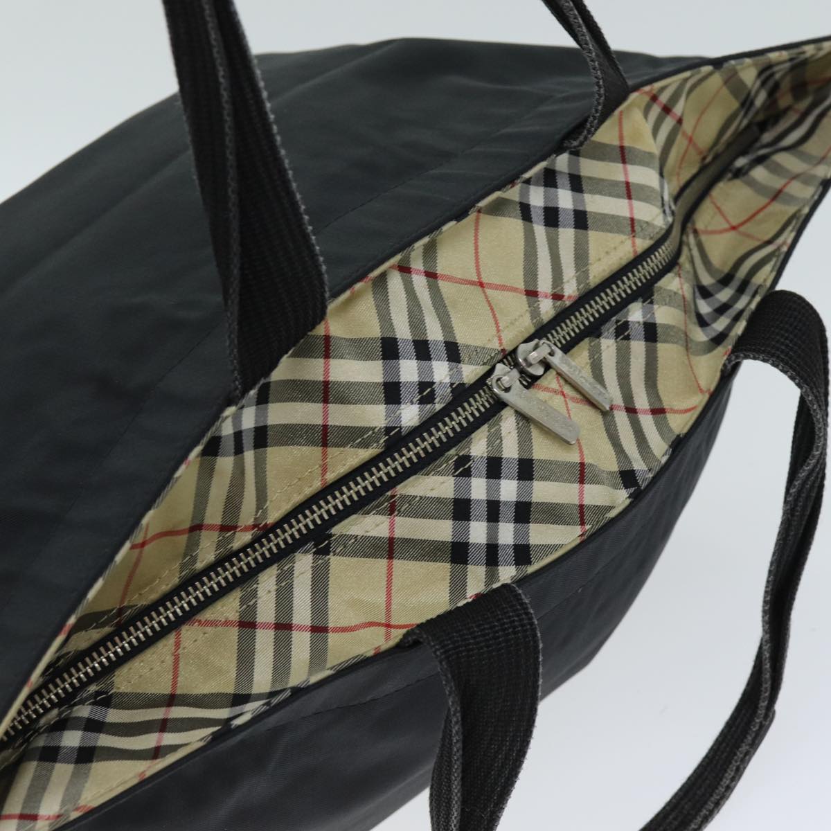 BURBERRYSs Nova Check Blue Label Tote Bag Nylon Black Auth yk12675