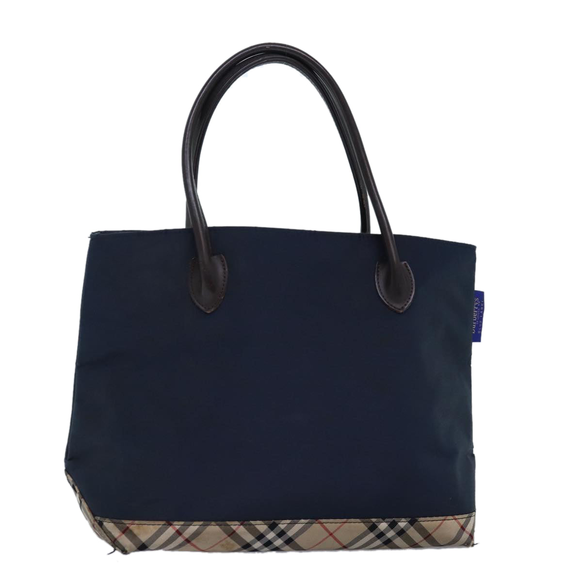 BURBERRYSs Nova Check Blue Label Tote Bag Nylon Black Beige Auth bs14389