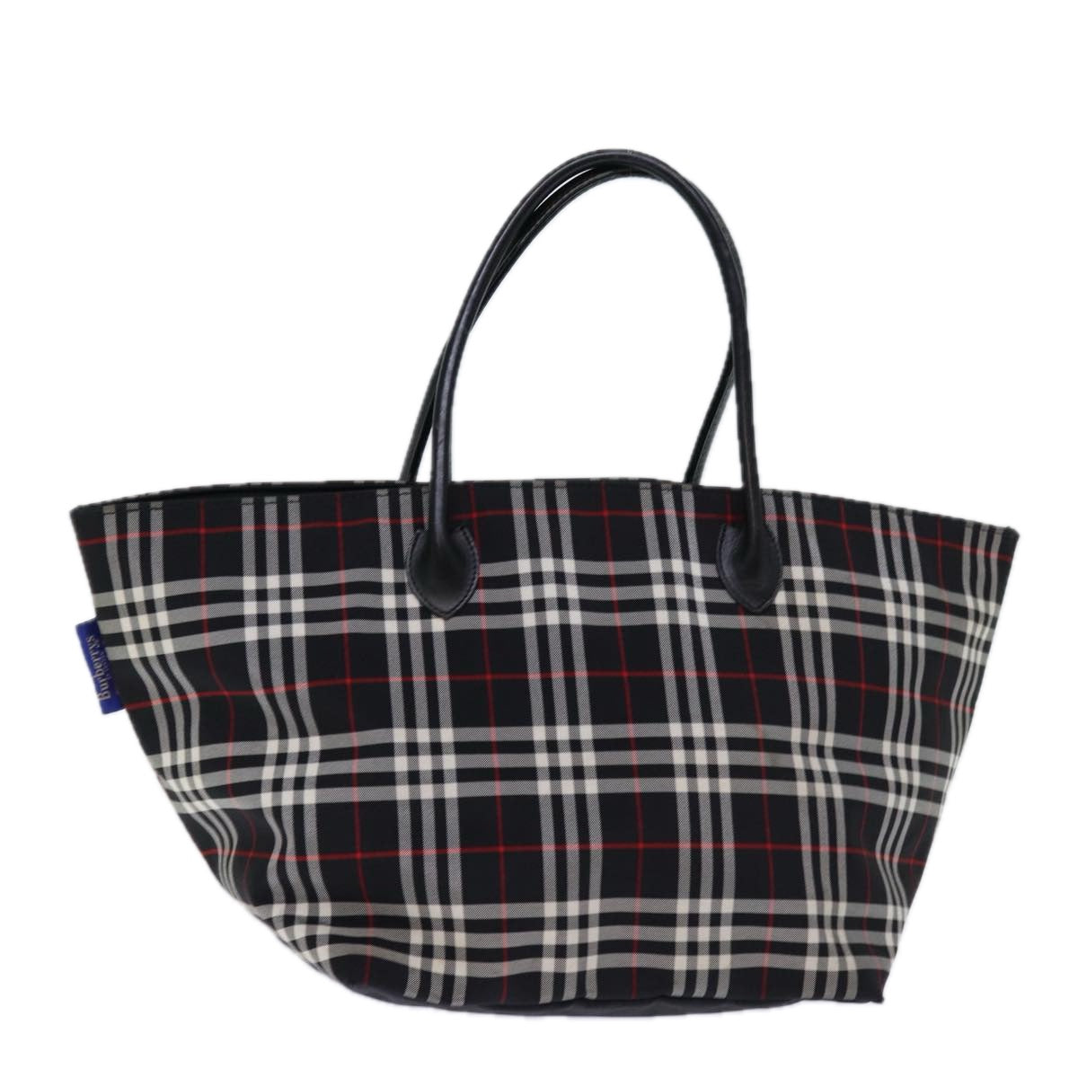 BURBERRYSs Nova Check Blue Label Tote Bag Nylon Black White Auth bs14251