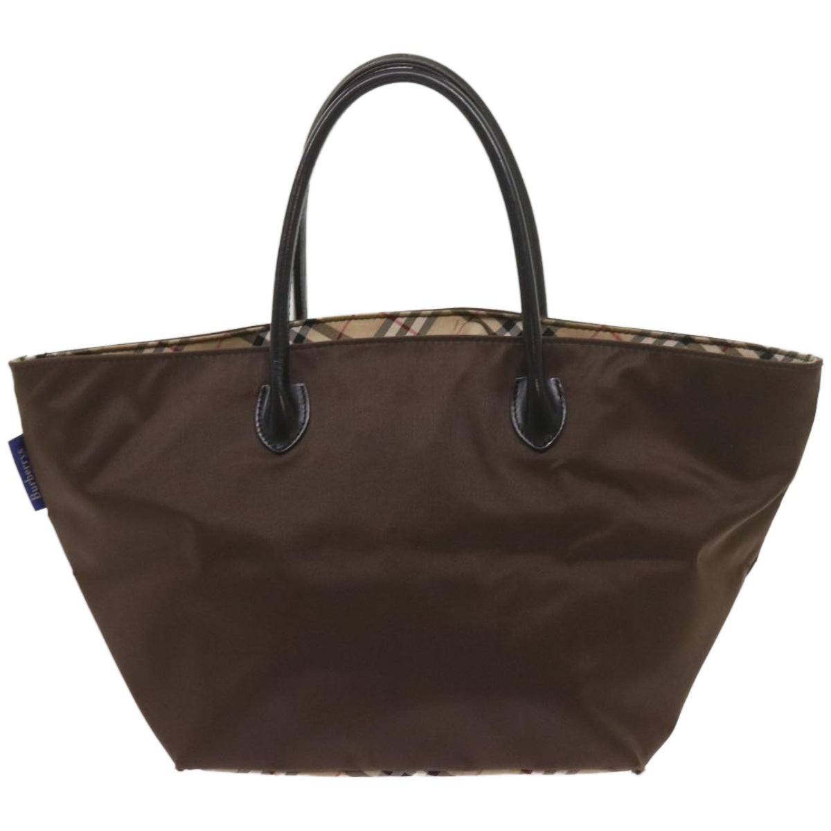 BURBERRYSs Nova Check Blue Label Tote Bag Nylon Brown Auth bs12383