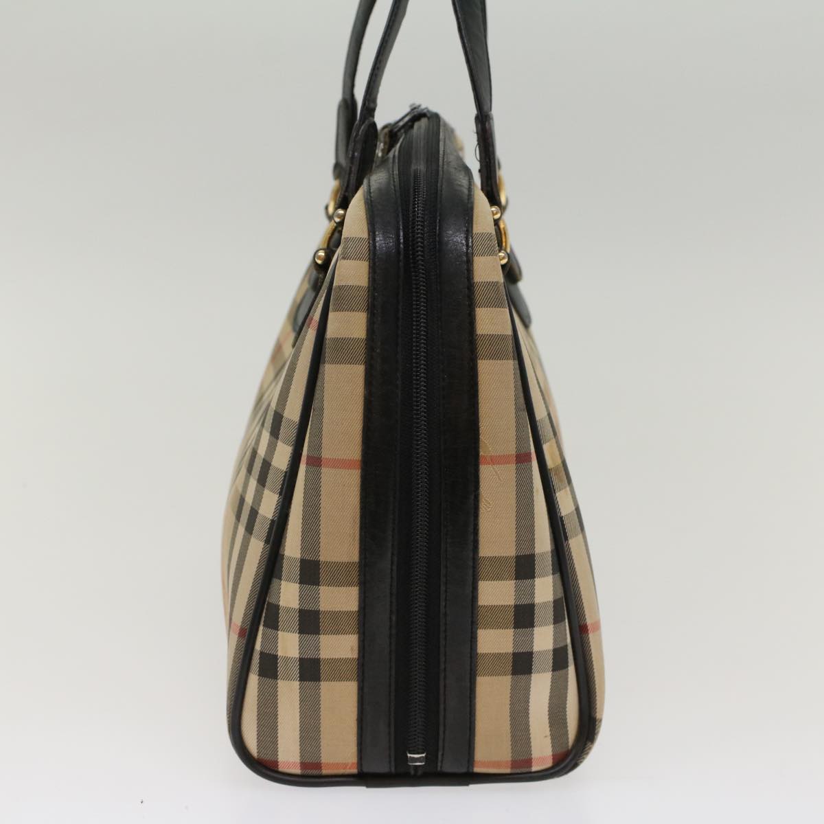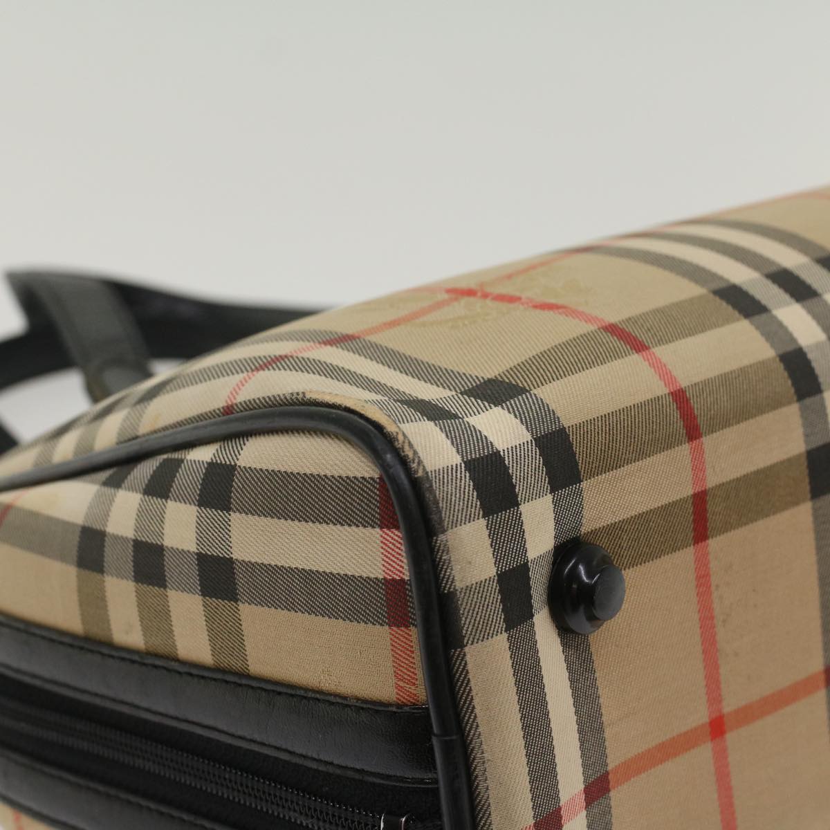 BURBERRYSs Nova Check Boston Bag Canvas Leather Beige Black Auth 53393