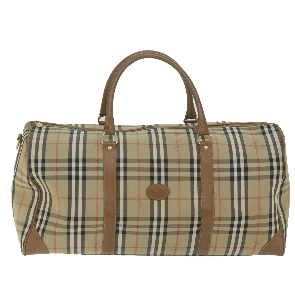 BURBERRYSs Nova Check Boston Bag Nylon Canvas Beige Auth 62118