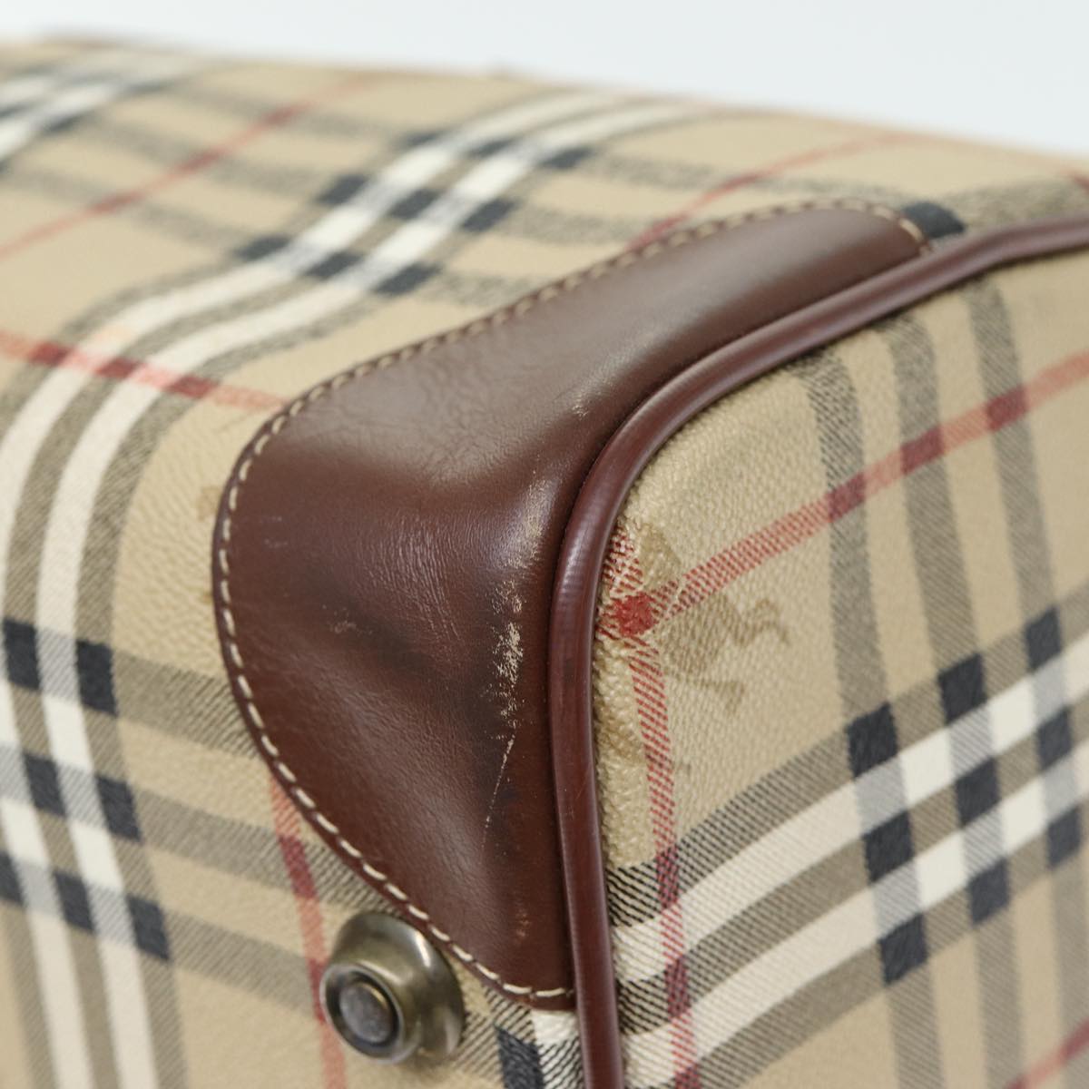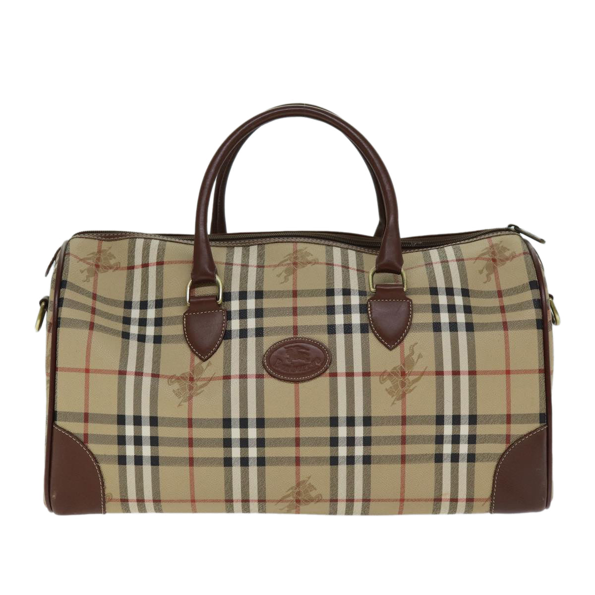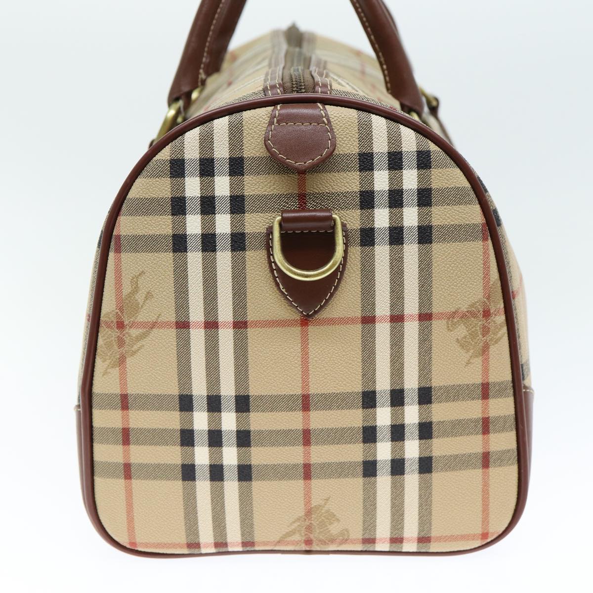 BURBERRYSs Nova Check Boston Bag PVC Leather 2way Beige Auth 80146