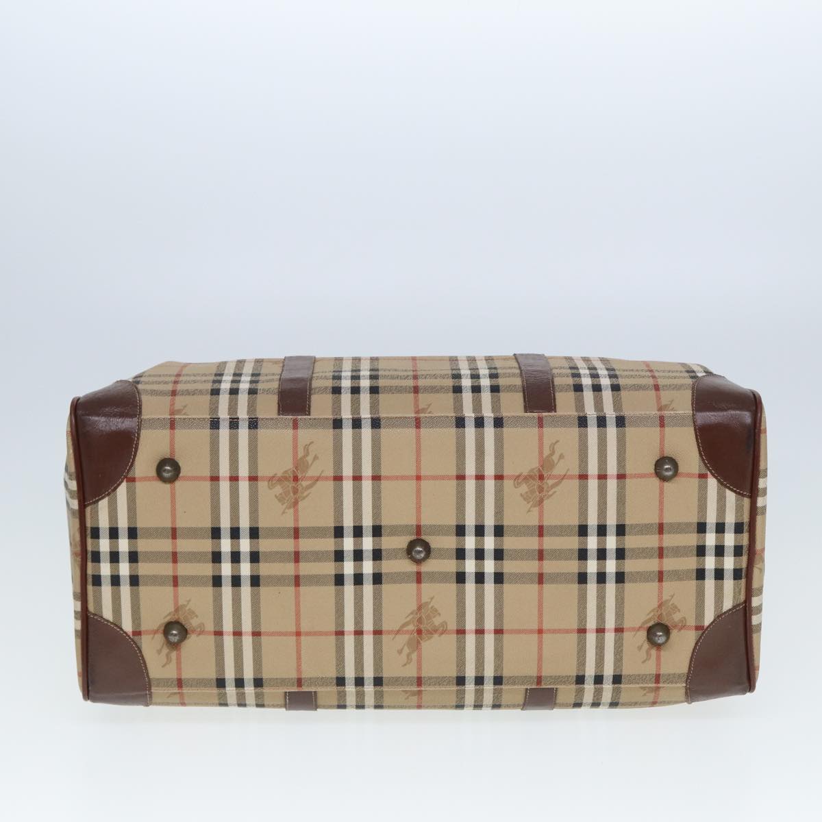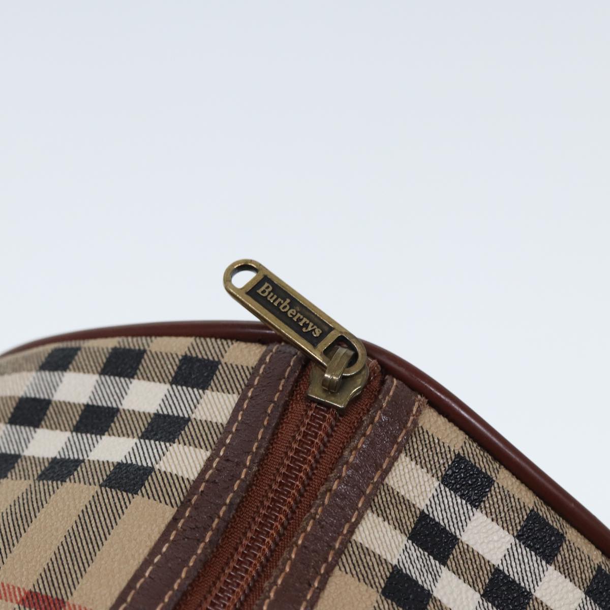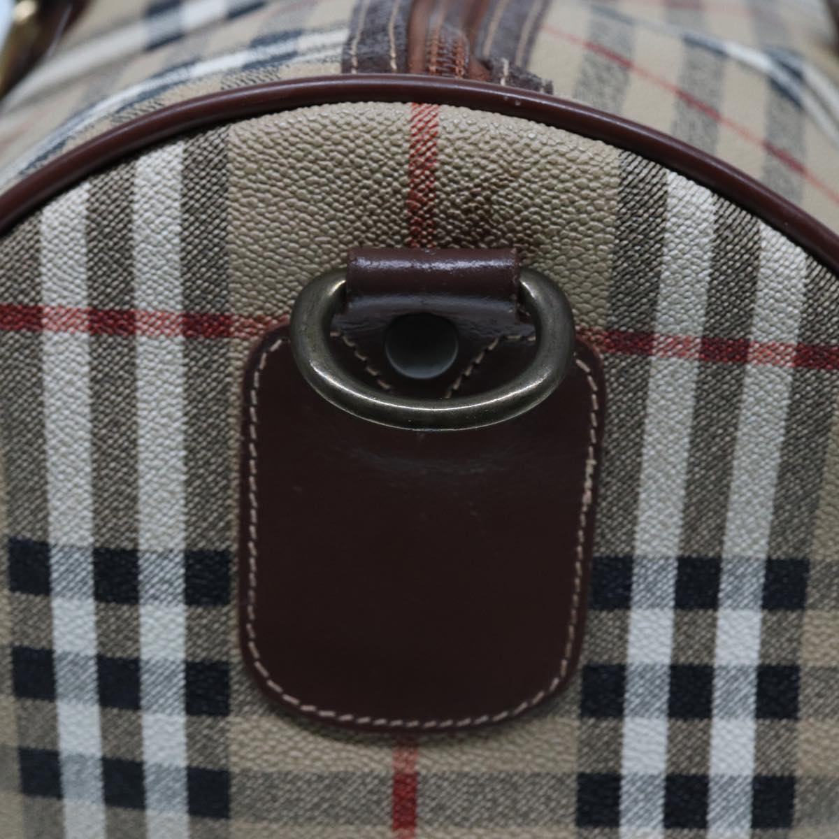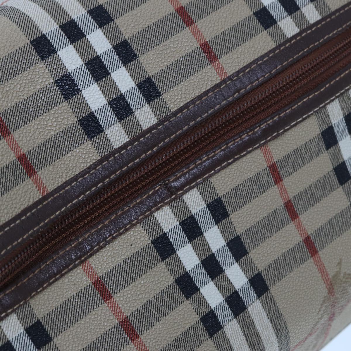 BURBERRYSs Nova Check Boston Bag PVC Leather Beige Auth tb1105