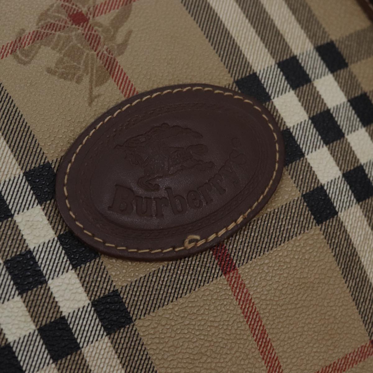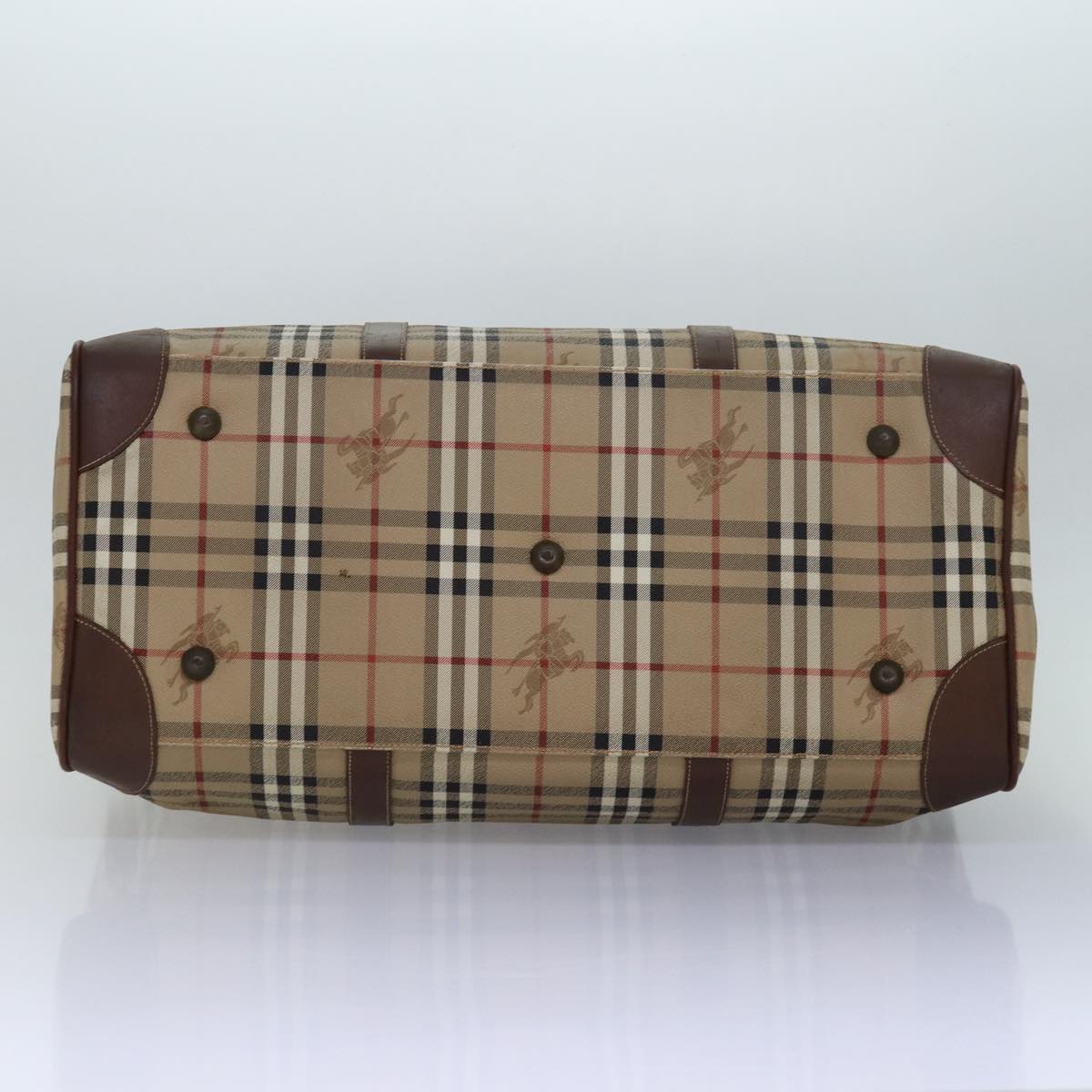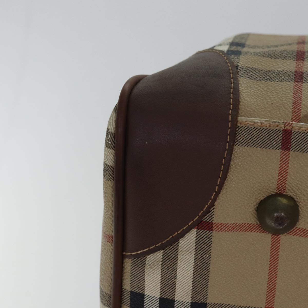 BURBERRYSs Nova Check Boston Bag PVC Leather Beige Brown Auth am6514