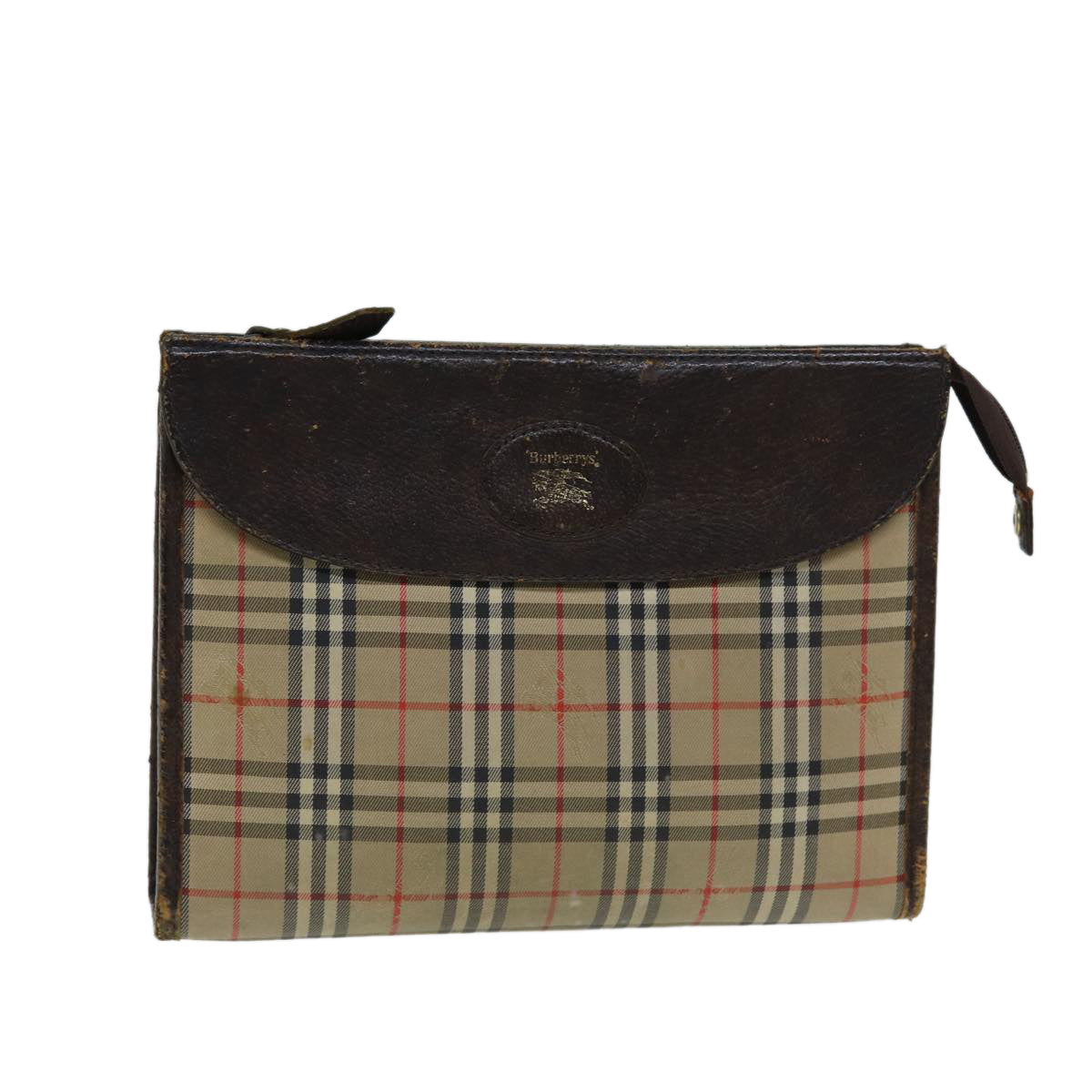 BURBERRYSs Nova Check Clutch Bag Canvas Beige Auth 81657