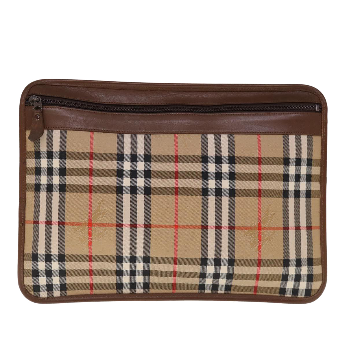 BURBERRYSs Nova Check Clutch Bag Canvas Beige Brown Auth yk10288