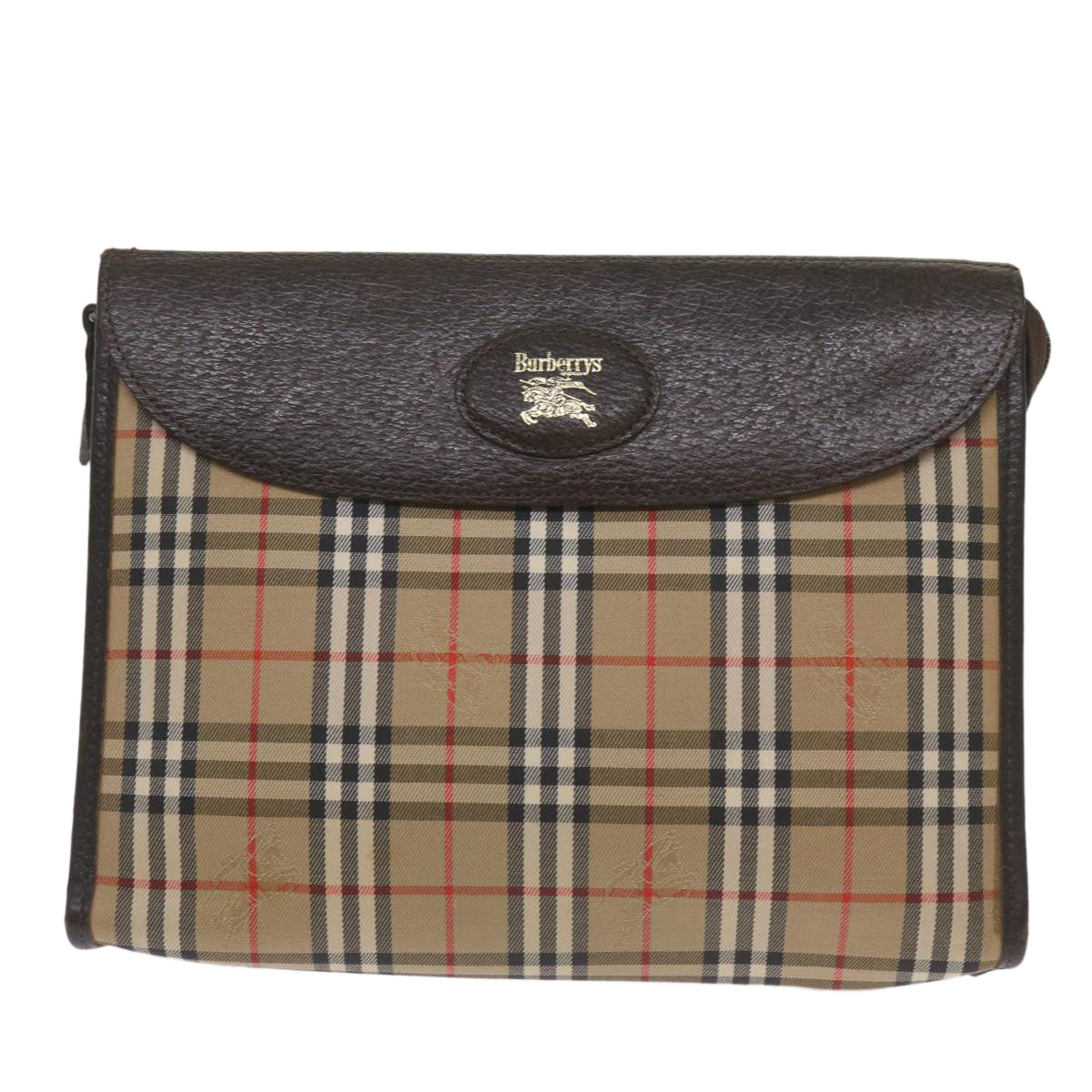 BurberrySs Nova Check Clutch Bag Canvas Black Beige Auth yk11236